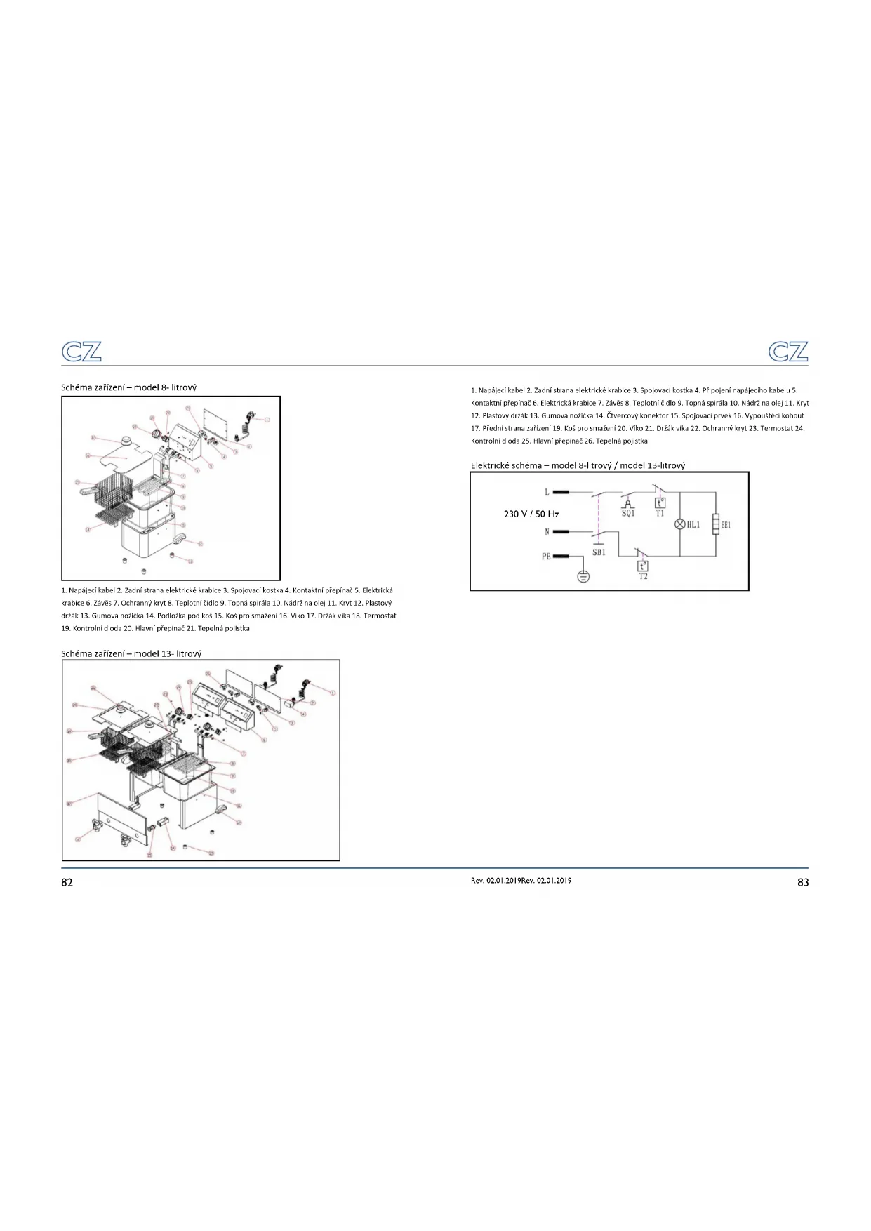 Kontrolní dioda 25. Hlavní přepínač 26. Tepelná pojistka Elektrické schéma – model 8-litrový / model 13-litrový 230 V / 50 Hz Rev. 02.01.2019Rev. 02.01.201984 Zařízení se skládá z: