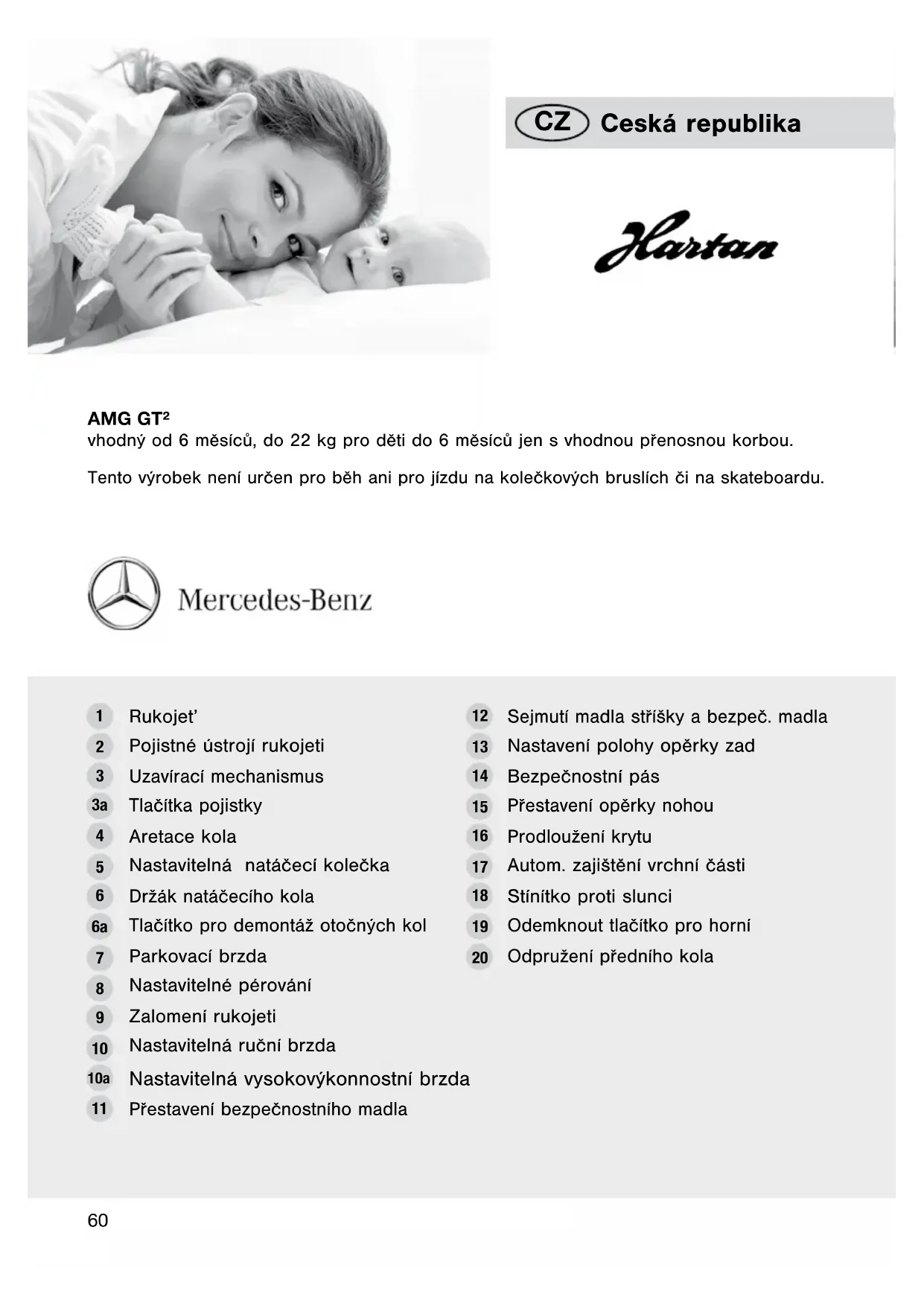 AMG GT² vhodný od 6 měsíců, do 22 kg pro děti do 6 měsíců jen s vhodnou přenosnou korbou. Tento výrobek není určen pro běh ani pro jízdu na kolečkových bruslích či na skateboardu.
