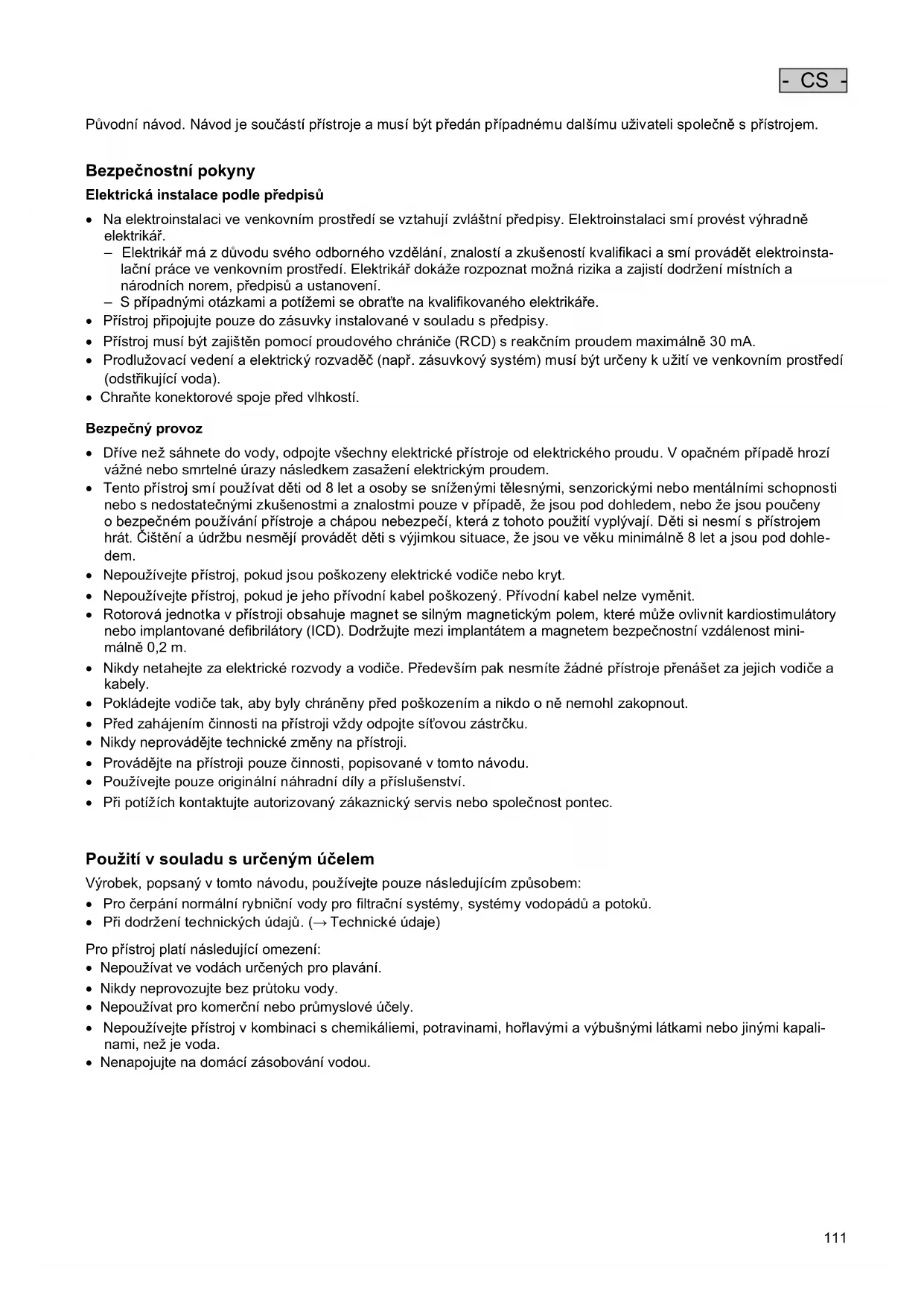 - CS - Původní návod. Návod je součástí přístroje a musí být předán případnému dalšímu uživateli společně s přístrojem. Bezpečnostní pokyny Elektrická instalace podle předpisů