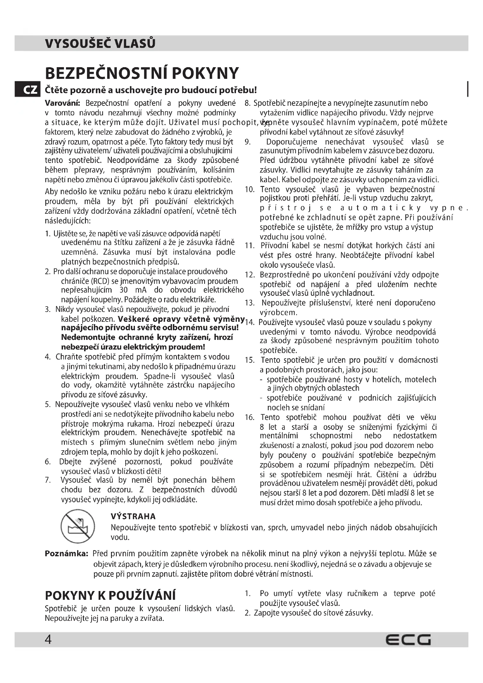 VV 1200 Travel - Fén ECG - Bezplatný návod k obsluze