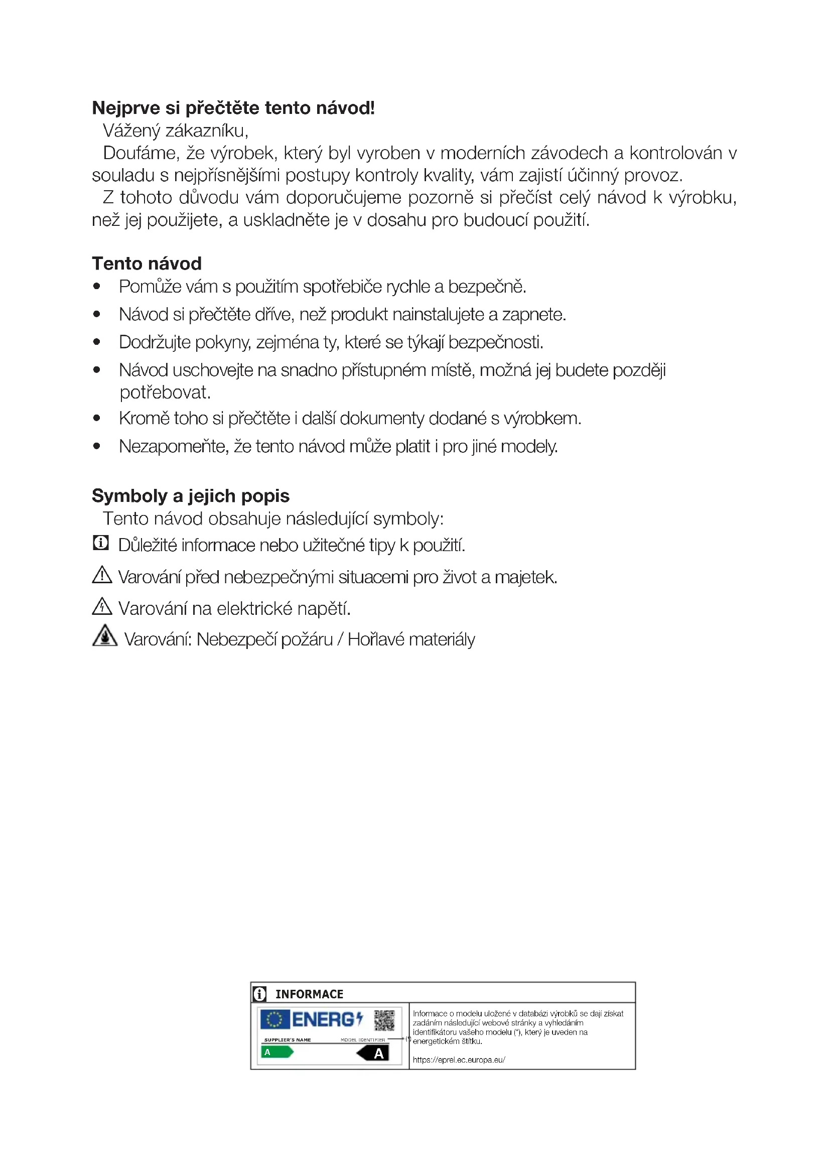 - Pomůže vám s použitím spotřebiče rychle a bezpečně.
