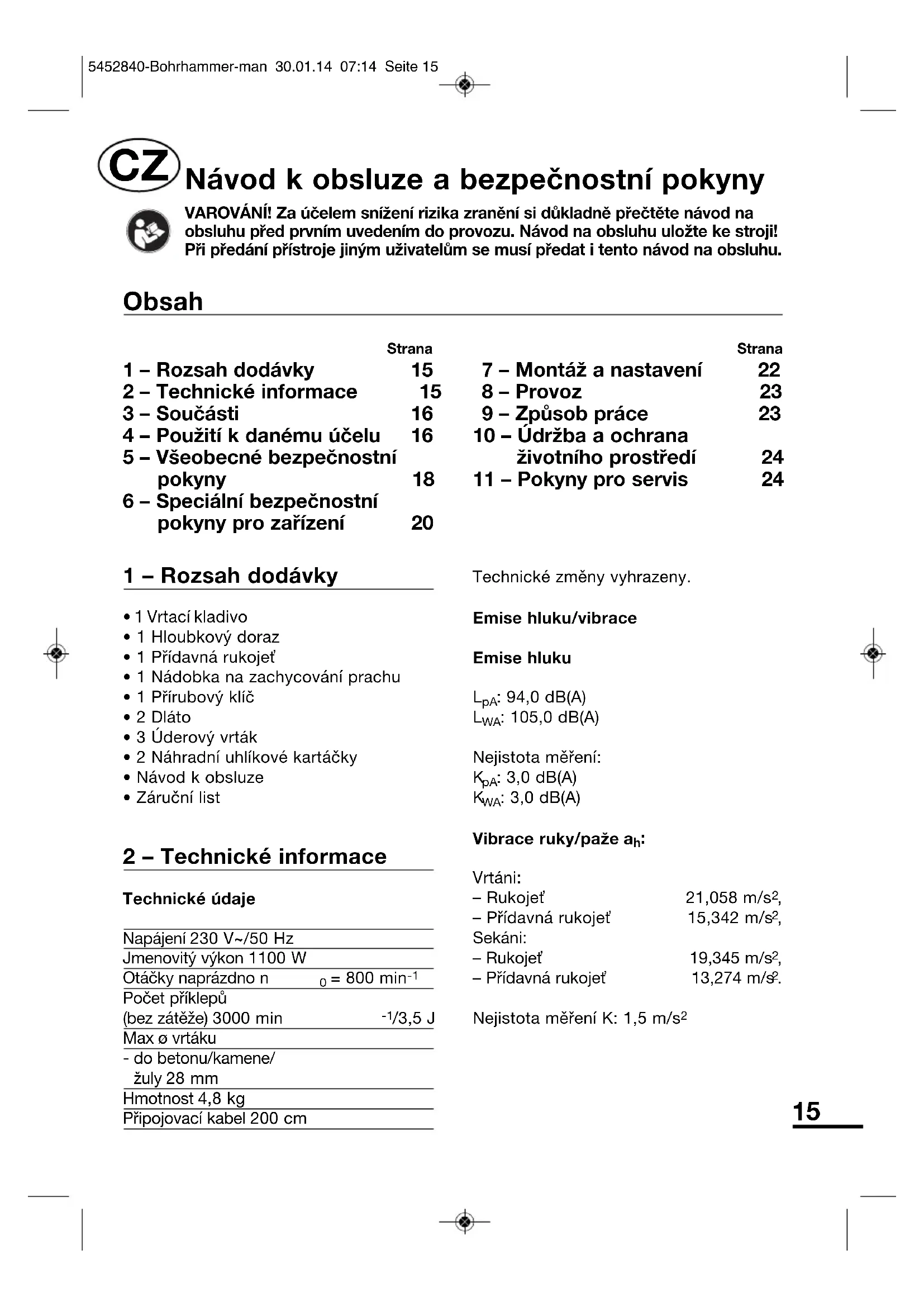 | 2 - Technické informace | 15 | 8 - Provoz | 23 |