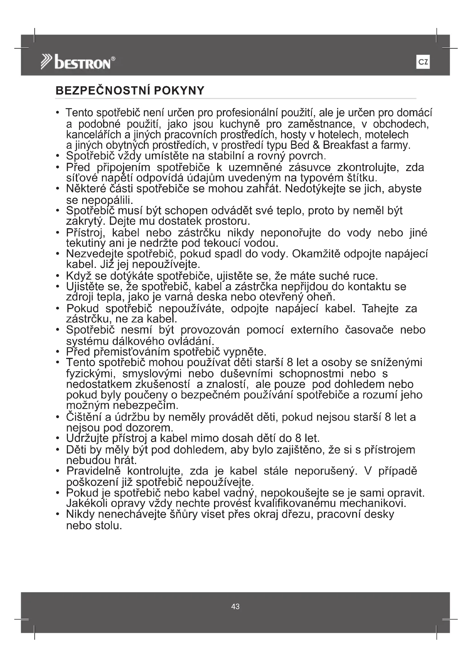 V nepravděpodobném případě poruchy kontaktujte servisní oddělení společnosti Bestron: www.bestron.com/serviceCZ