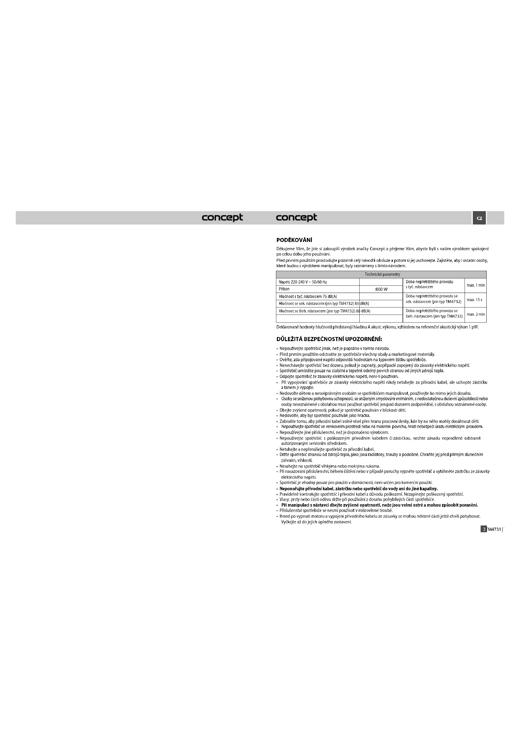 Najděte návod k zařízení zdarma TM4731 Concept ve formátu PDF.