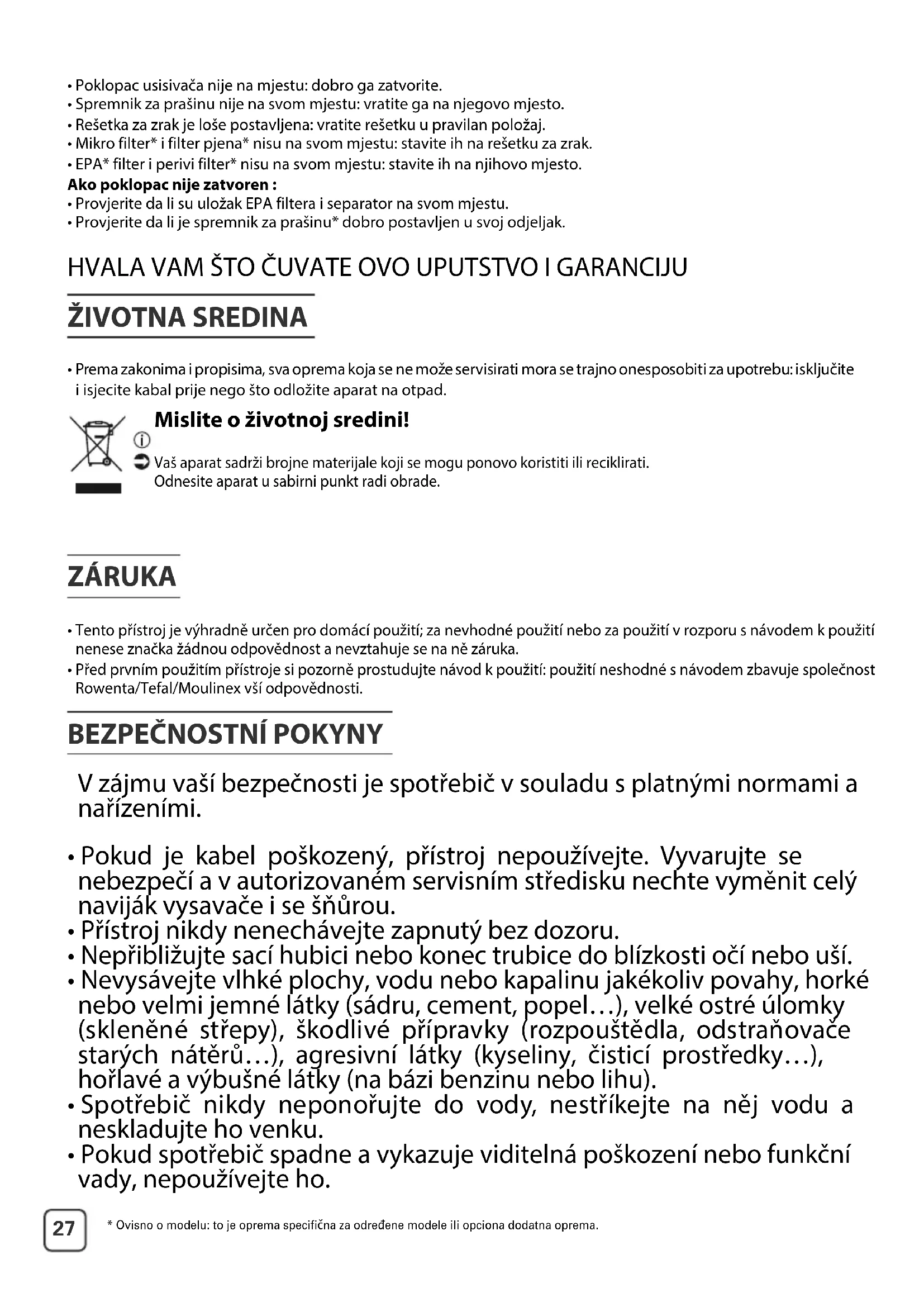 - Pokud spotřebič spadne a vykazuje viditelná poškození nebo funkční vady, nepoužívejte ho. SM_LEAFLET CDS ASPIRATEUR_EUROPE_2220001042-01.qxp_EUROPE 03/05/2017 12:06 Page2728