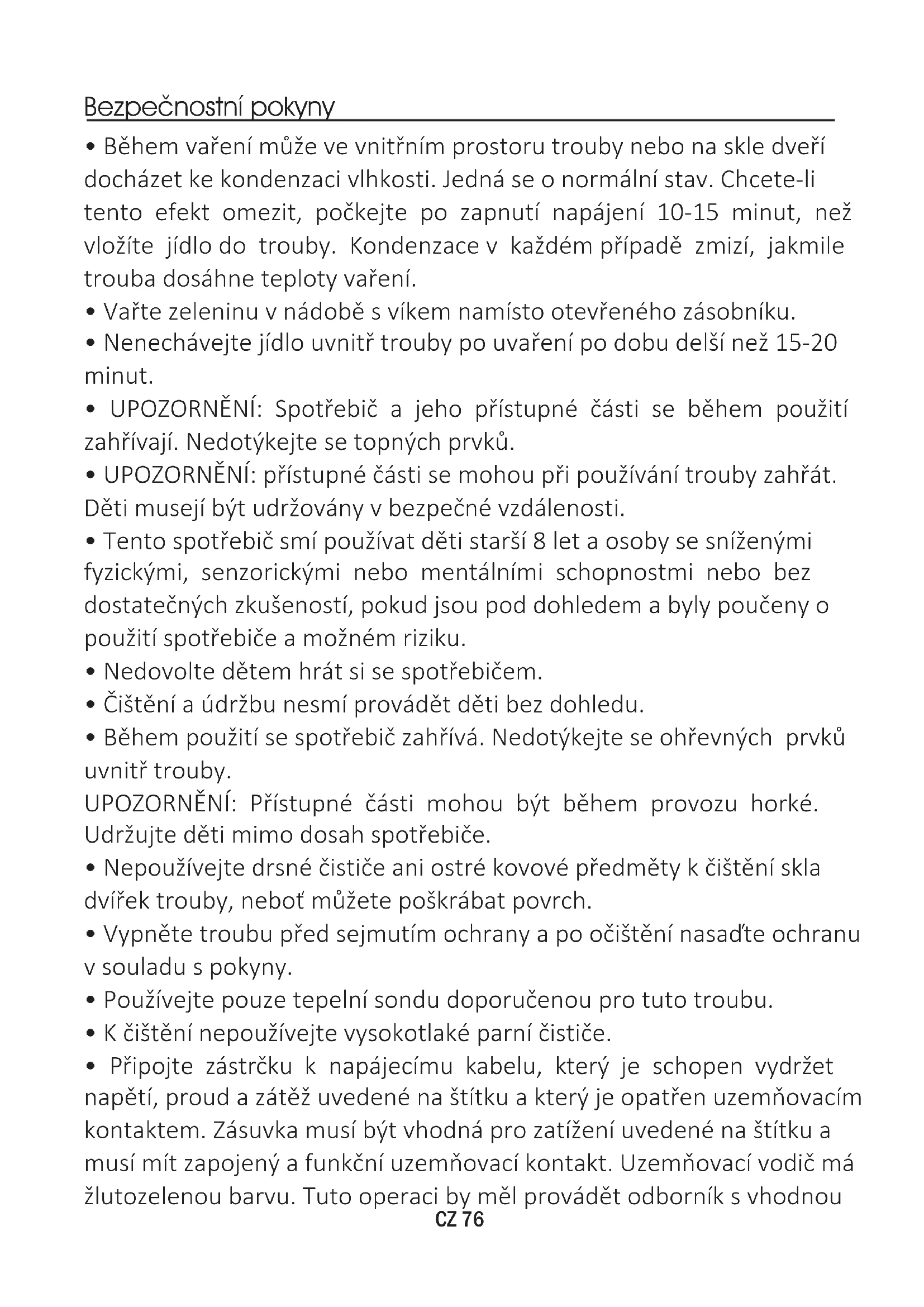 - UPOZORNĚNÍ: přístupné části se mohou při používání trouby zahřát. Děti musejí být udržovány v bezpečné vzdálenosti.