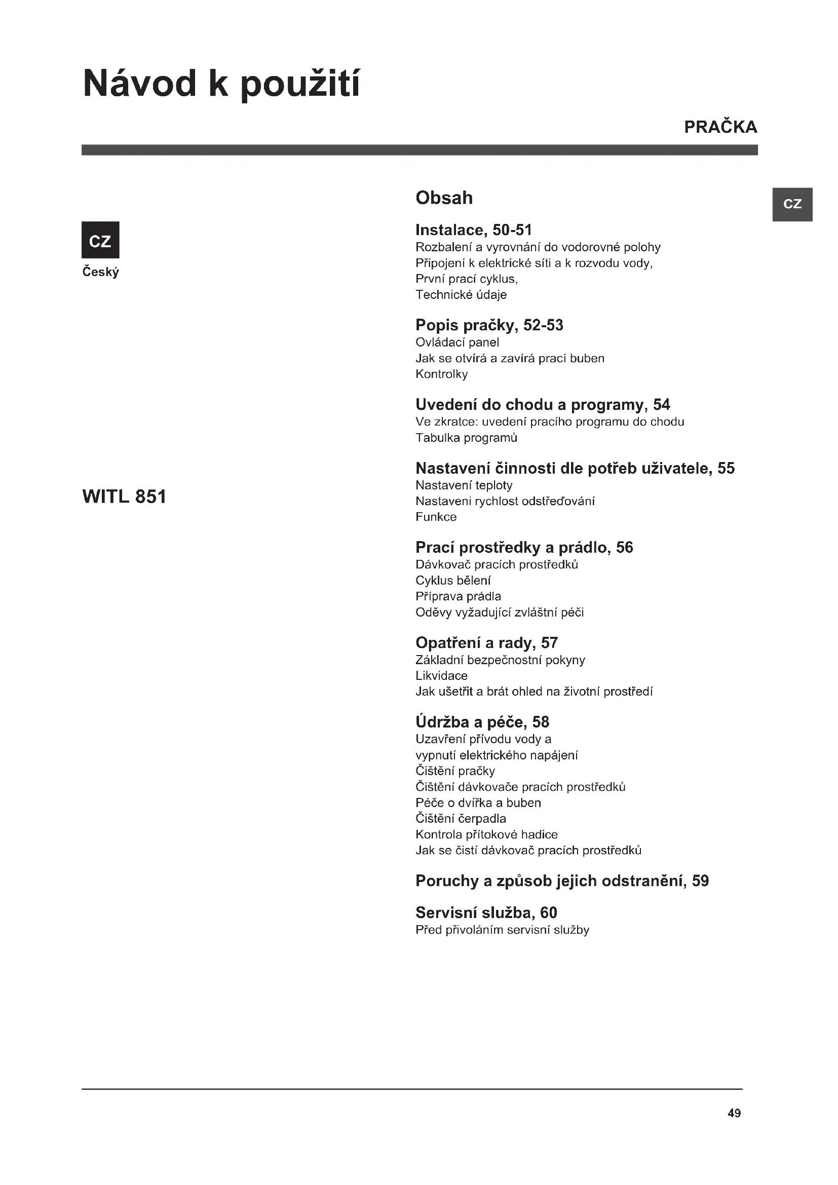 PRAČKA WITL 851 Návod k použití50