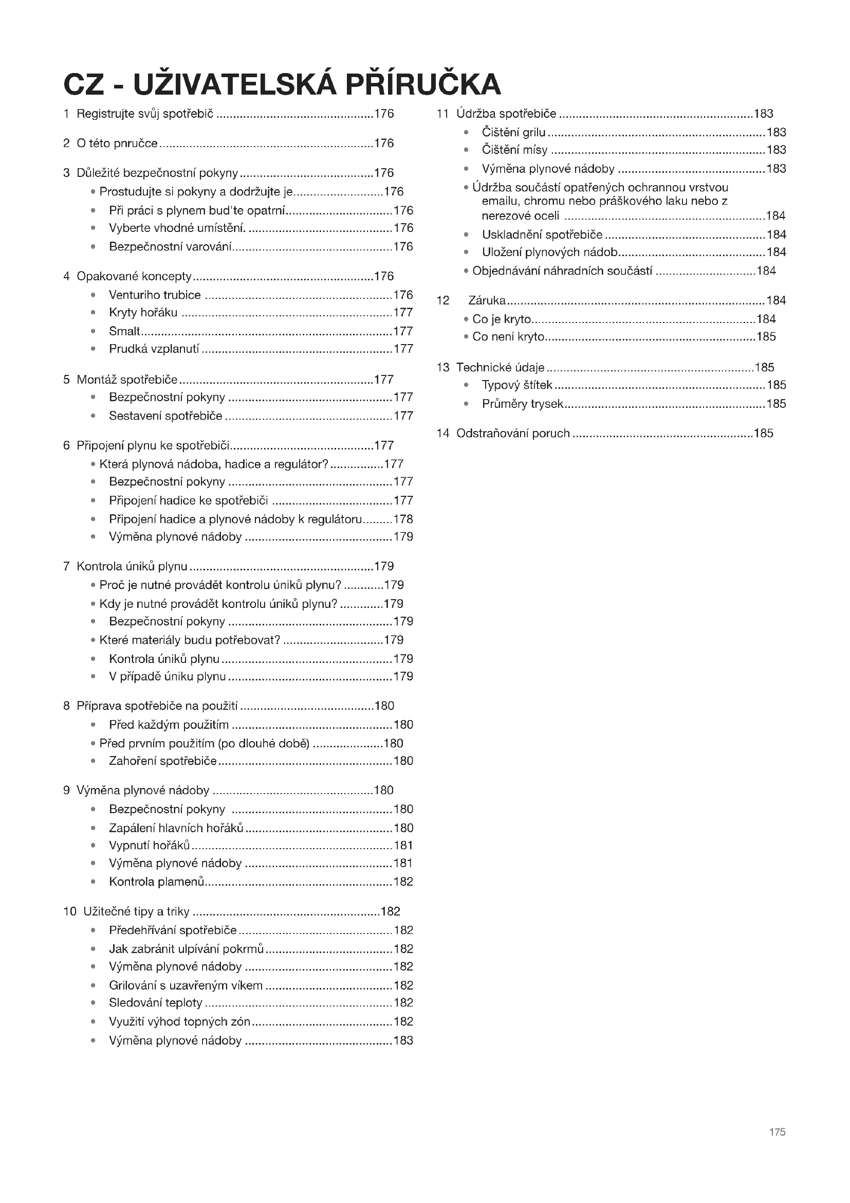 - Výměna plynové nádoby ............................................179 7 Kontrola úniků plynu .......................................................179