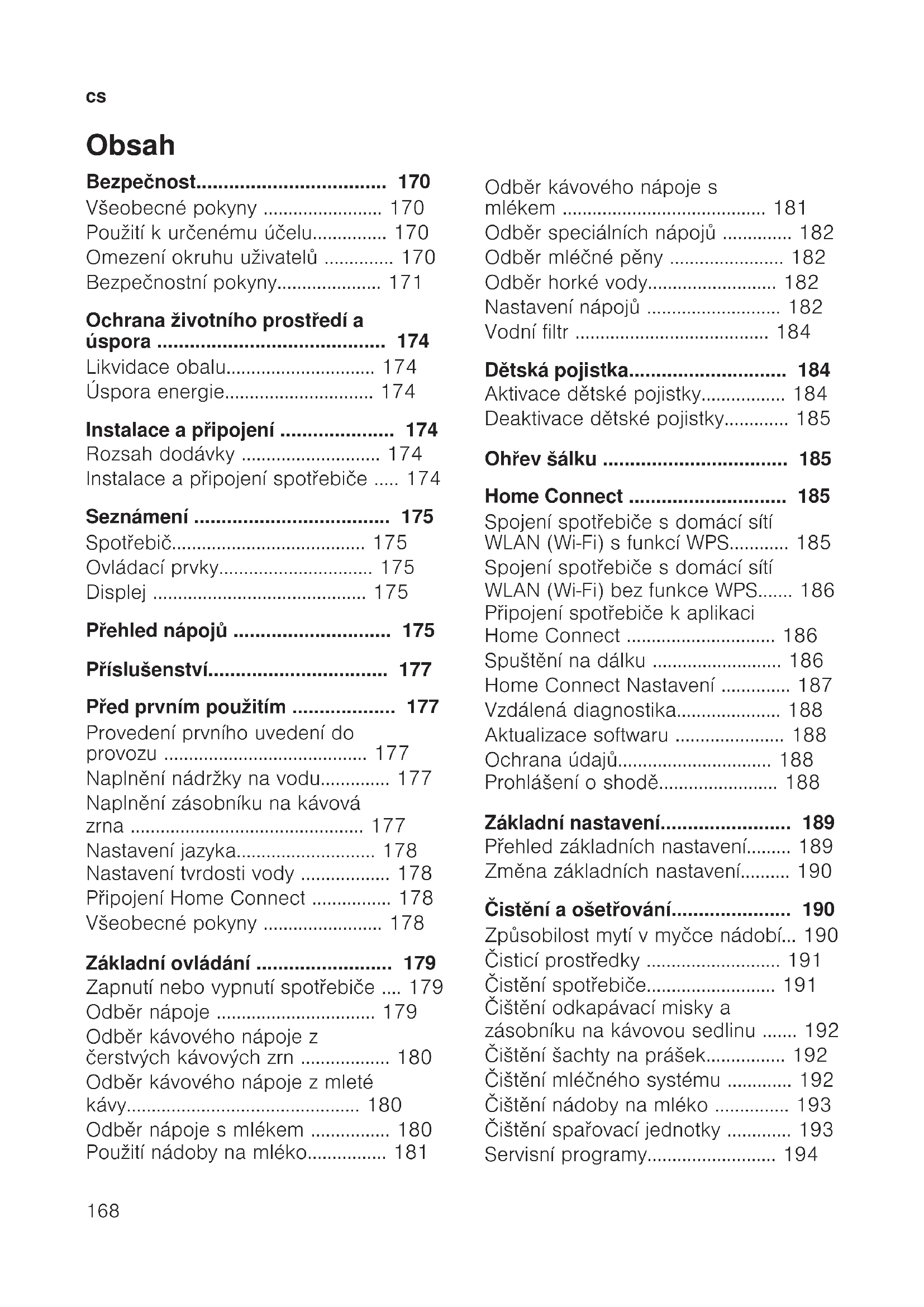 - Obsah Bezpečnost p. 170