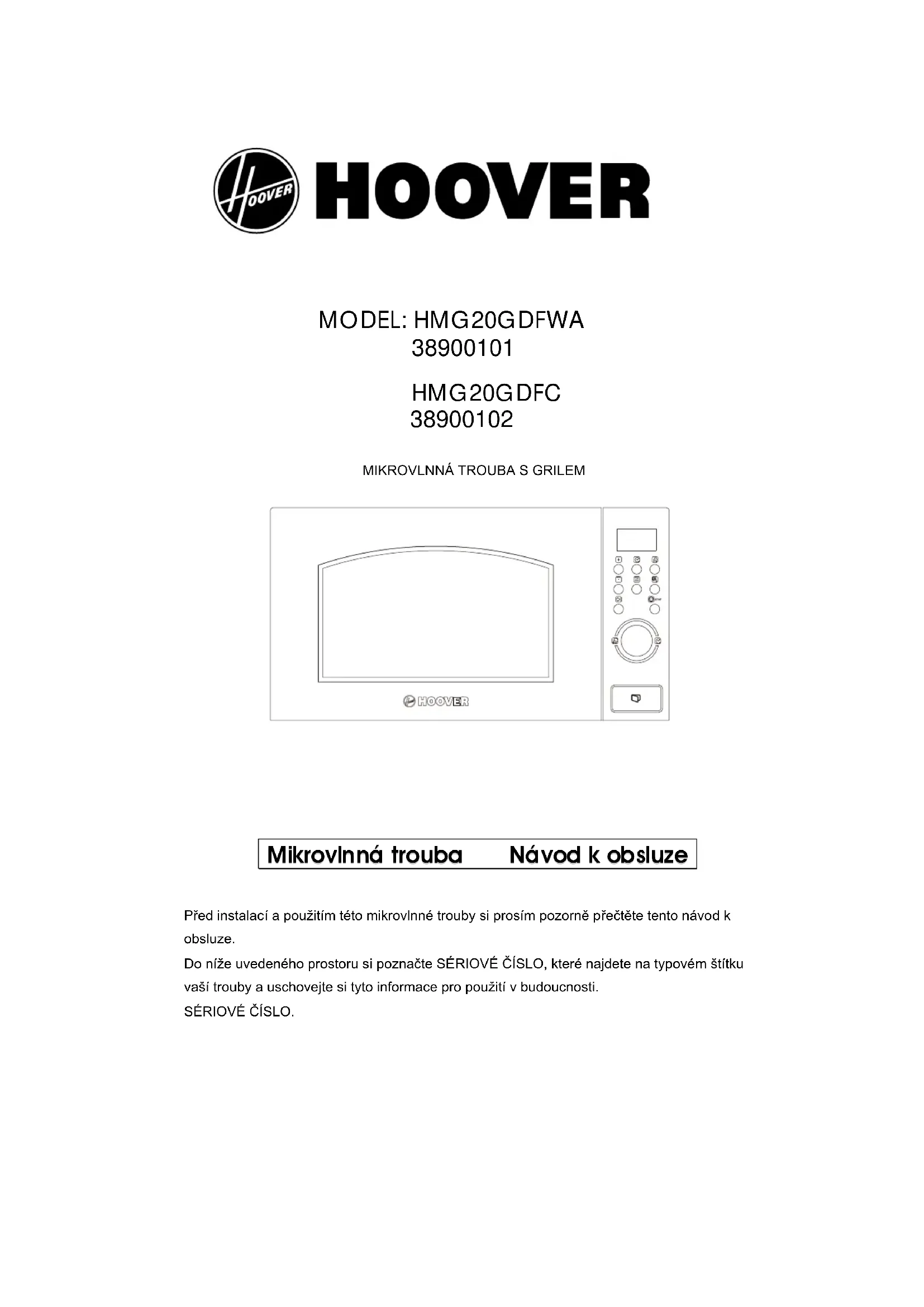 HMG20GDFC - Mikrovlnná trouba HOOVER - Bezplatný návod k obsluze