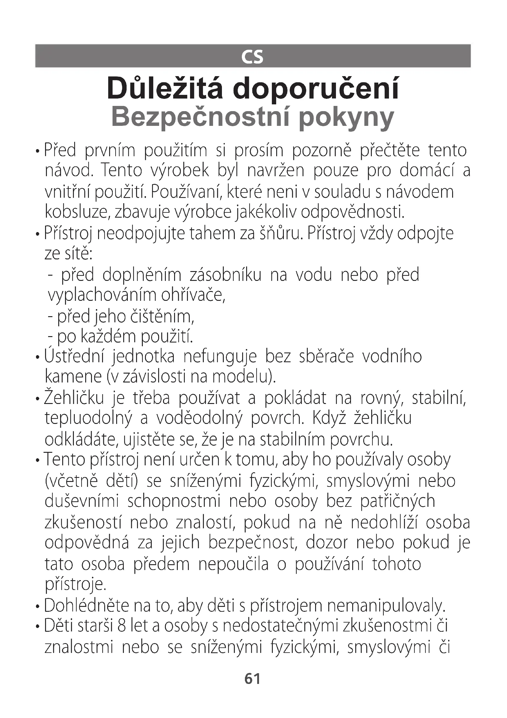1800139811-STEAM-STATIONS-SAFETIES-V6.qxp_110x154 01/06/2016 15:21 Page60CS Důležitá doporučení Bezpečnostní pokyny