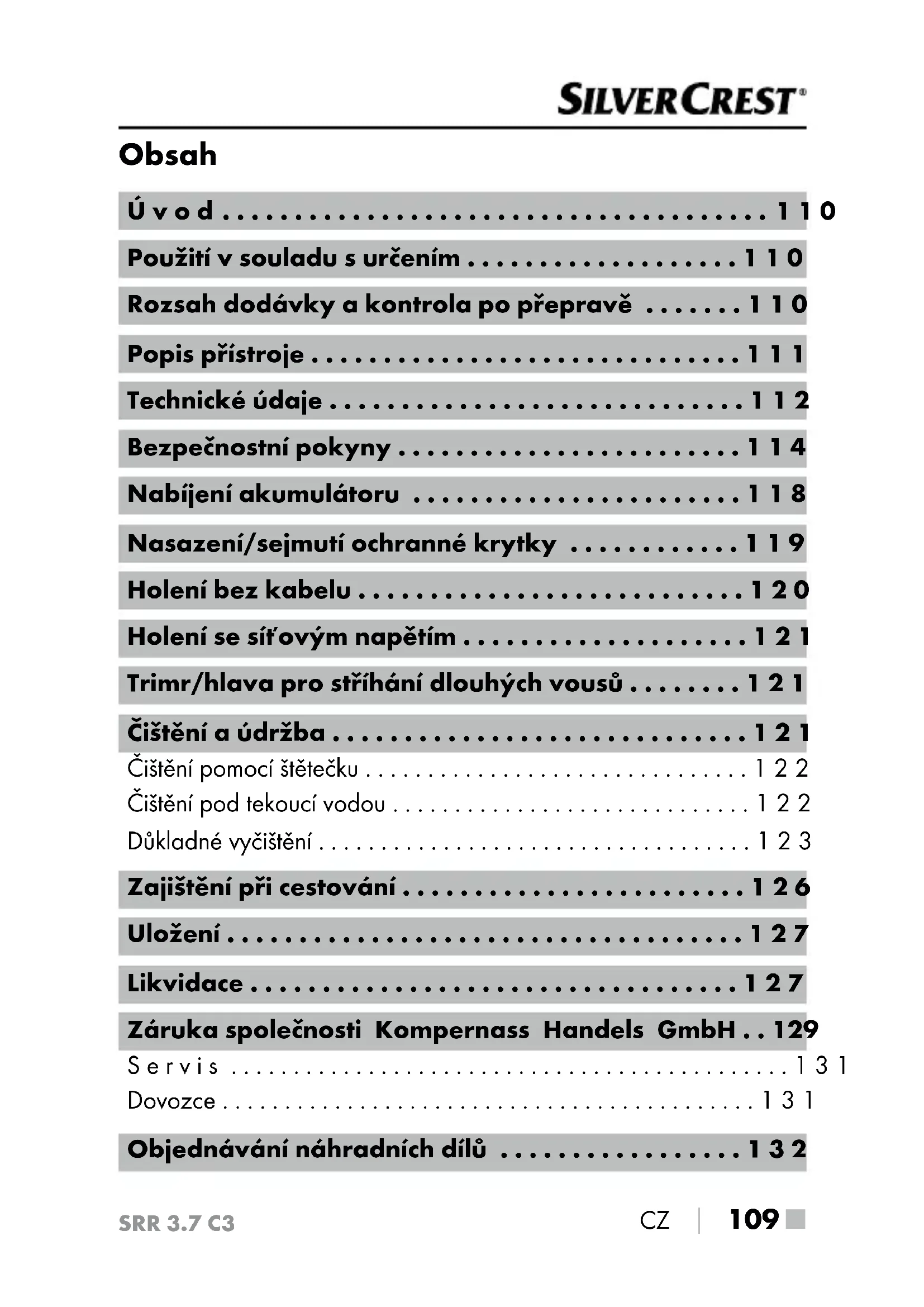 - Trimr/hlava pro stříhání dlouhých vousů p. 121