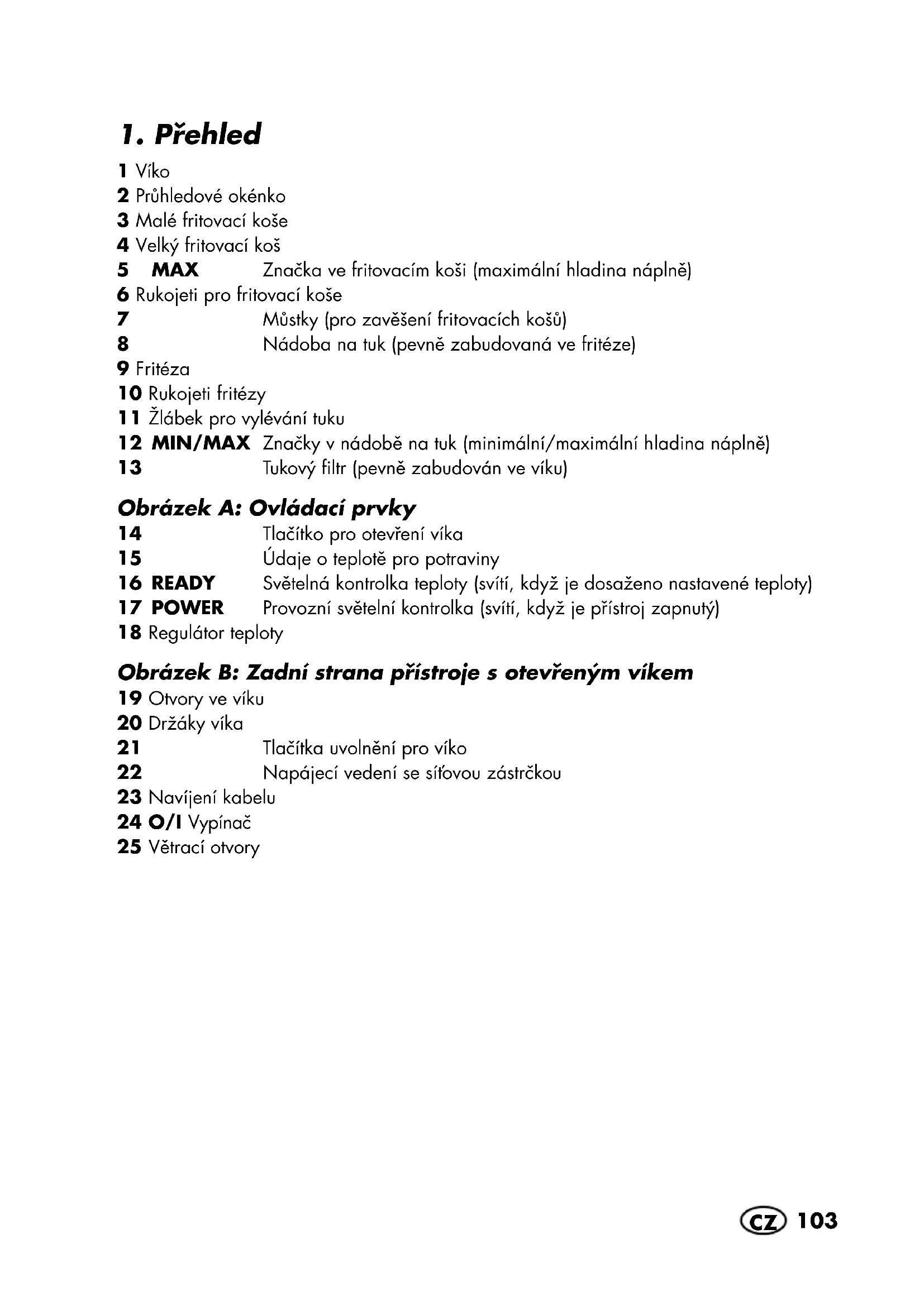 Nedotykeje se horkych casti pristroje jak napr. pruhledoveho okenka, otvoru ve viku, kovoveho krytu fritézy. Fritovaci koše berte pouze za rukojeti.