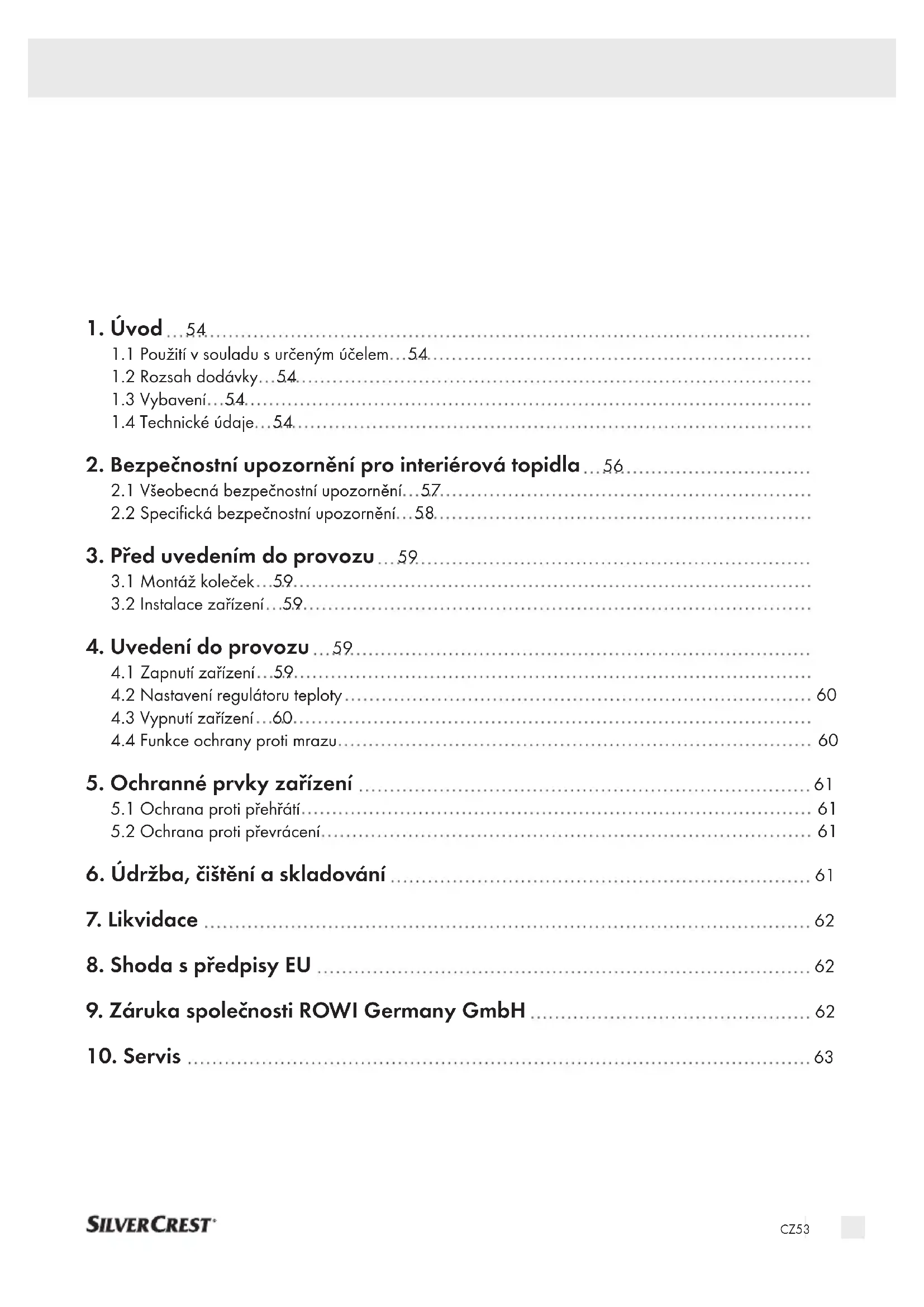 2. Bezpečnostní upozornění pro interiérová topidla 56