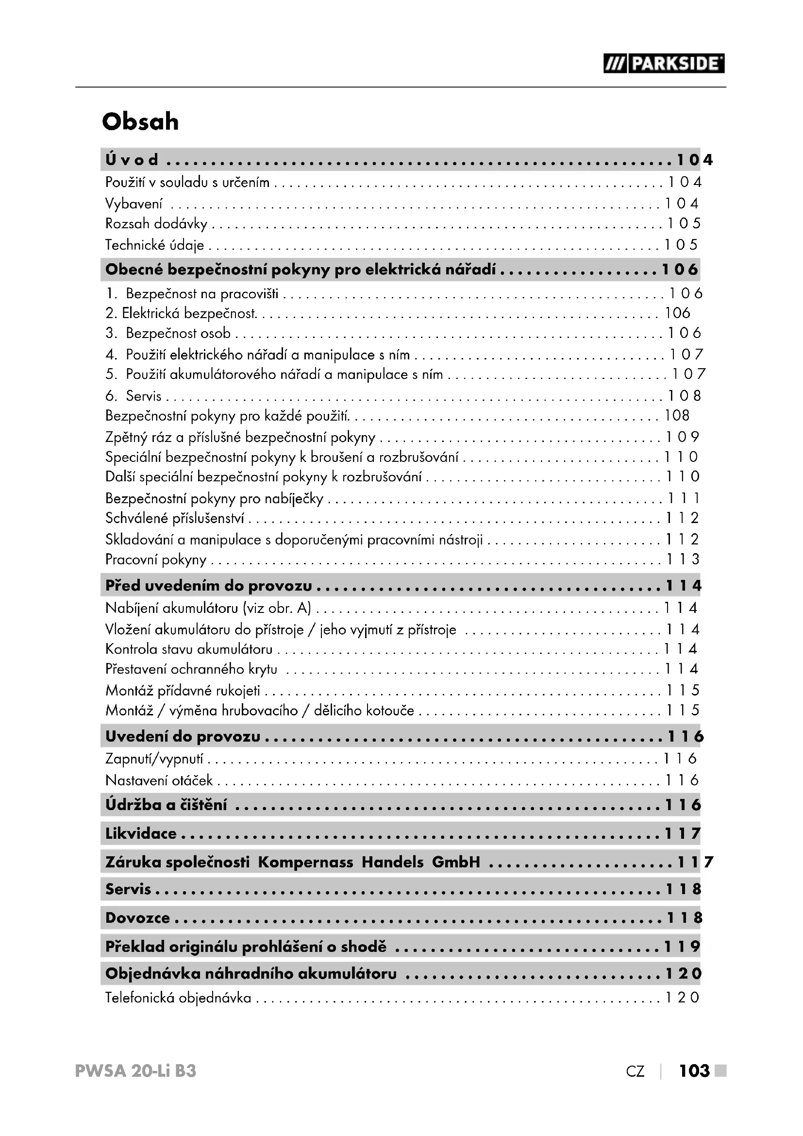 NÁVOD K OBSLUZE PWSA 20Li B3 PARKSIDE