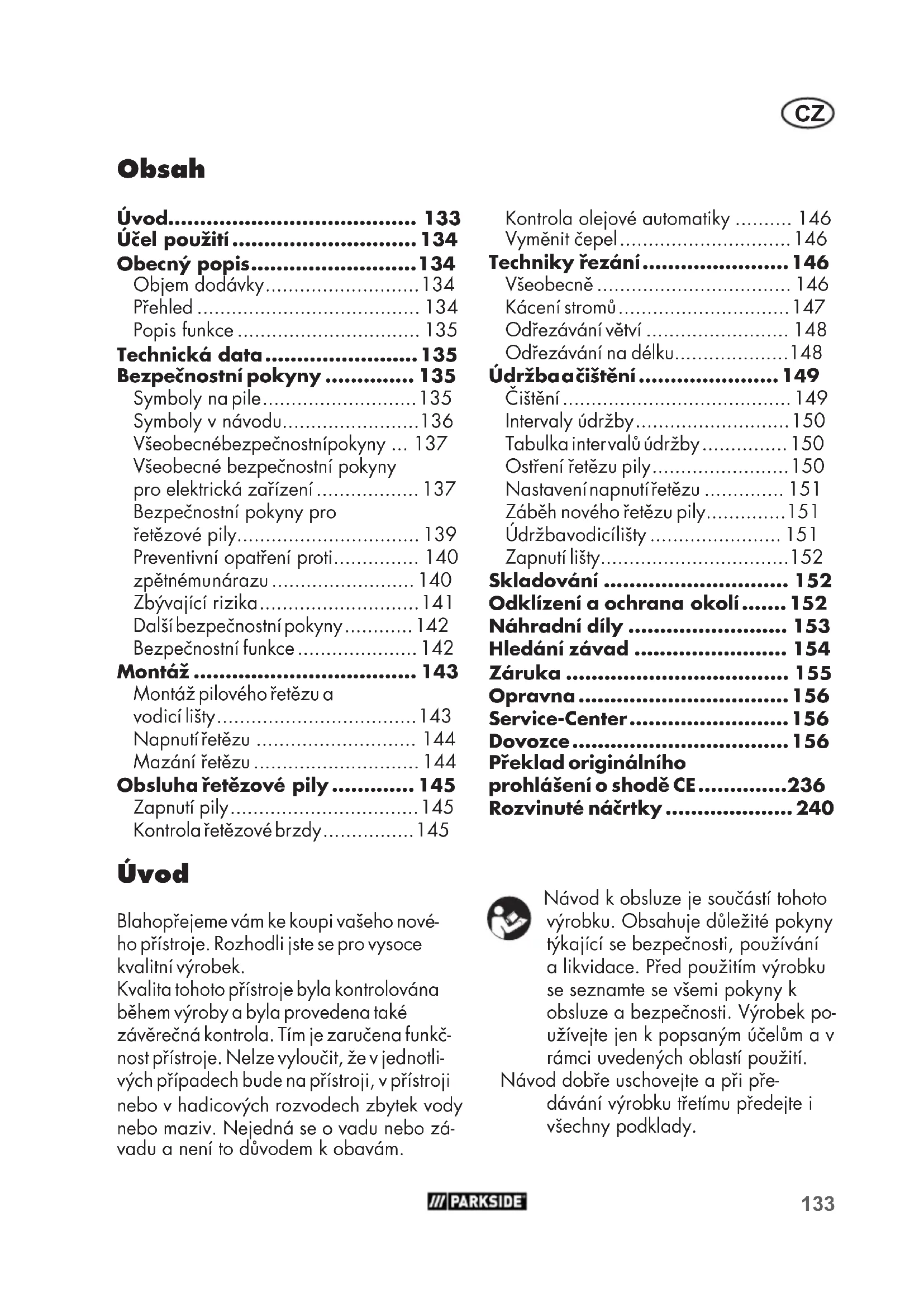 - Obsluha řetězové pily p. 145