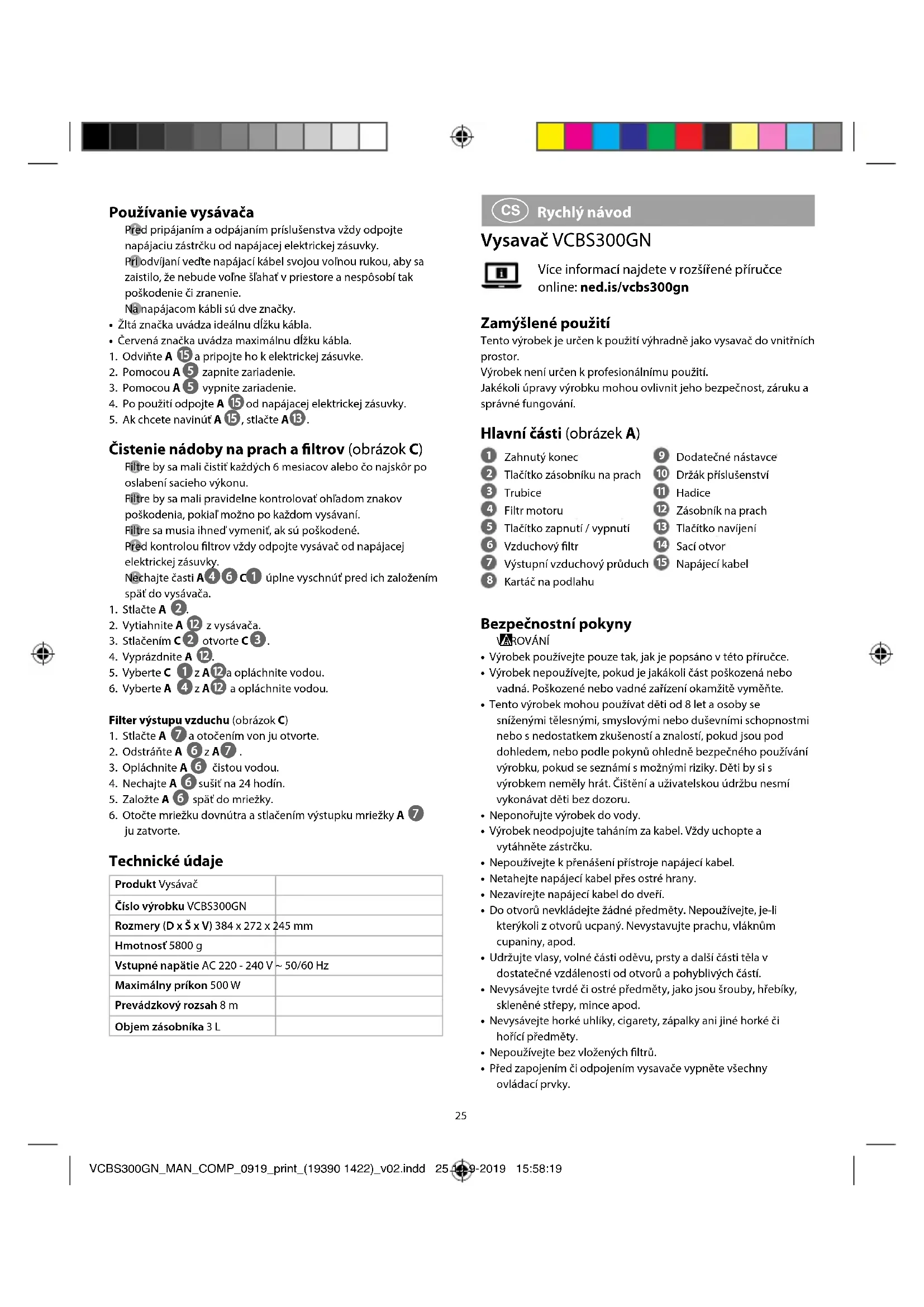 VCBS300GN - Vysavač NEDIS - Bezplatný návod k obsluze