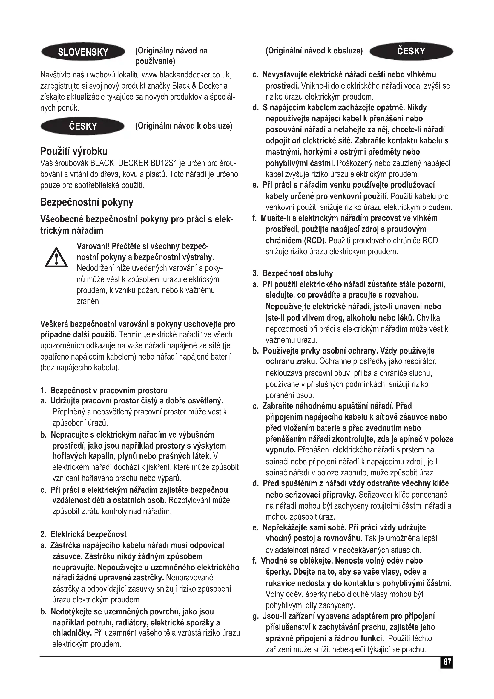 NÁVOD K OBSLUZE BD12S1 BLACK & DECKER
