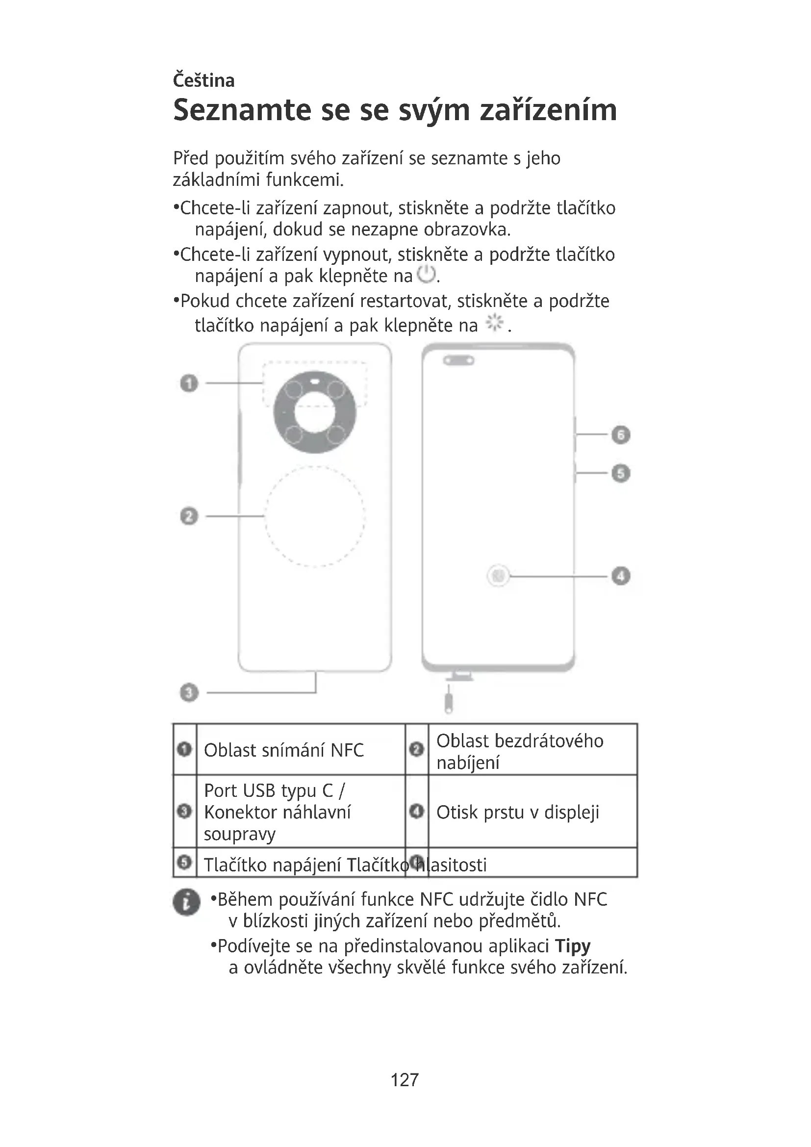 - Podívejte se na předinstalovanou aplikaci Tipy a ovládněte všechny skvělé funkce svého zařízení. 127Začínáme