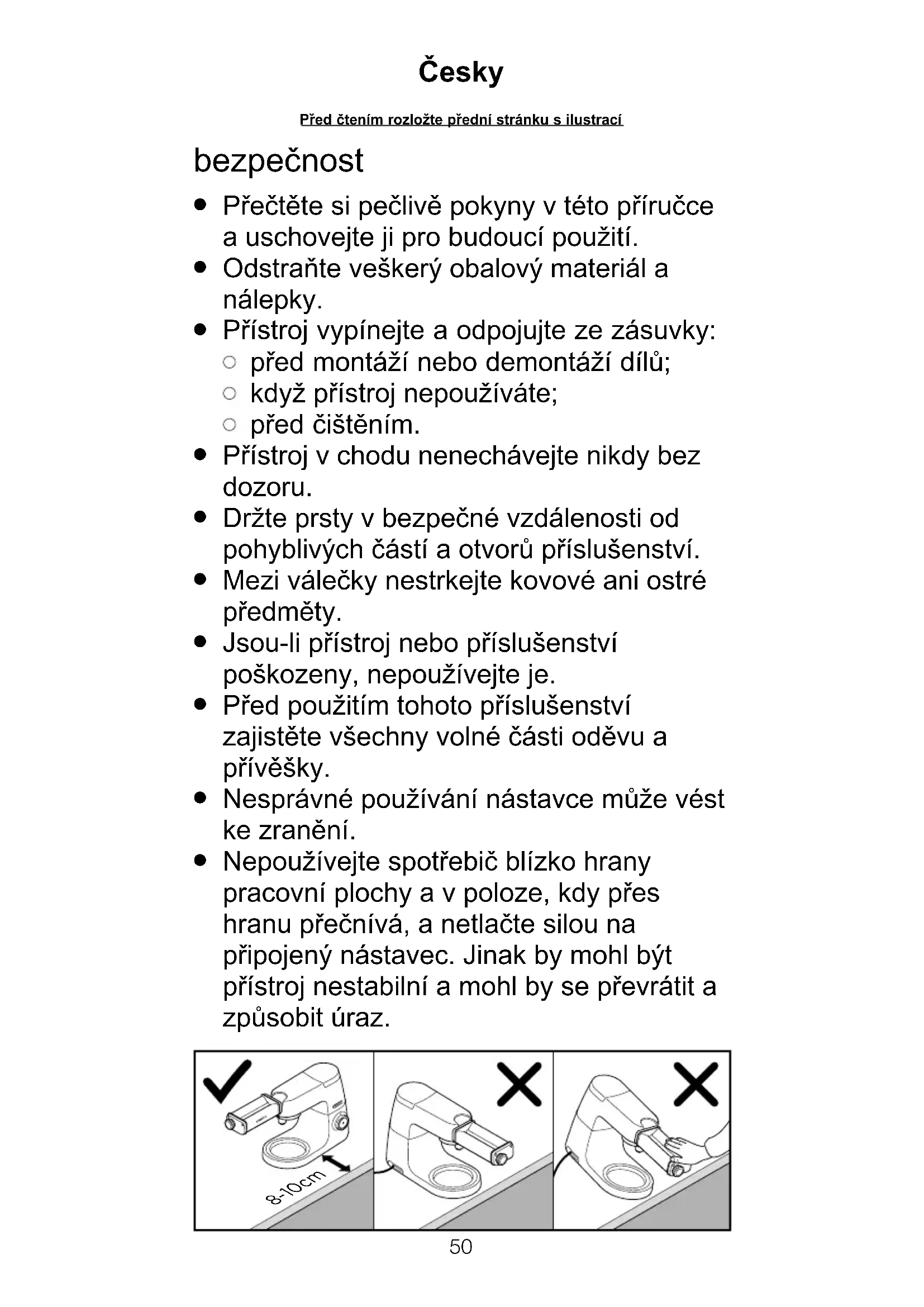 P¡ístroj vypínejte a odpojujte ze zásuvky: p¡ed montá¥í nebo demontá¥í dílº; když přístroj nepoužíváte; p¡ed ïi•têním.