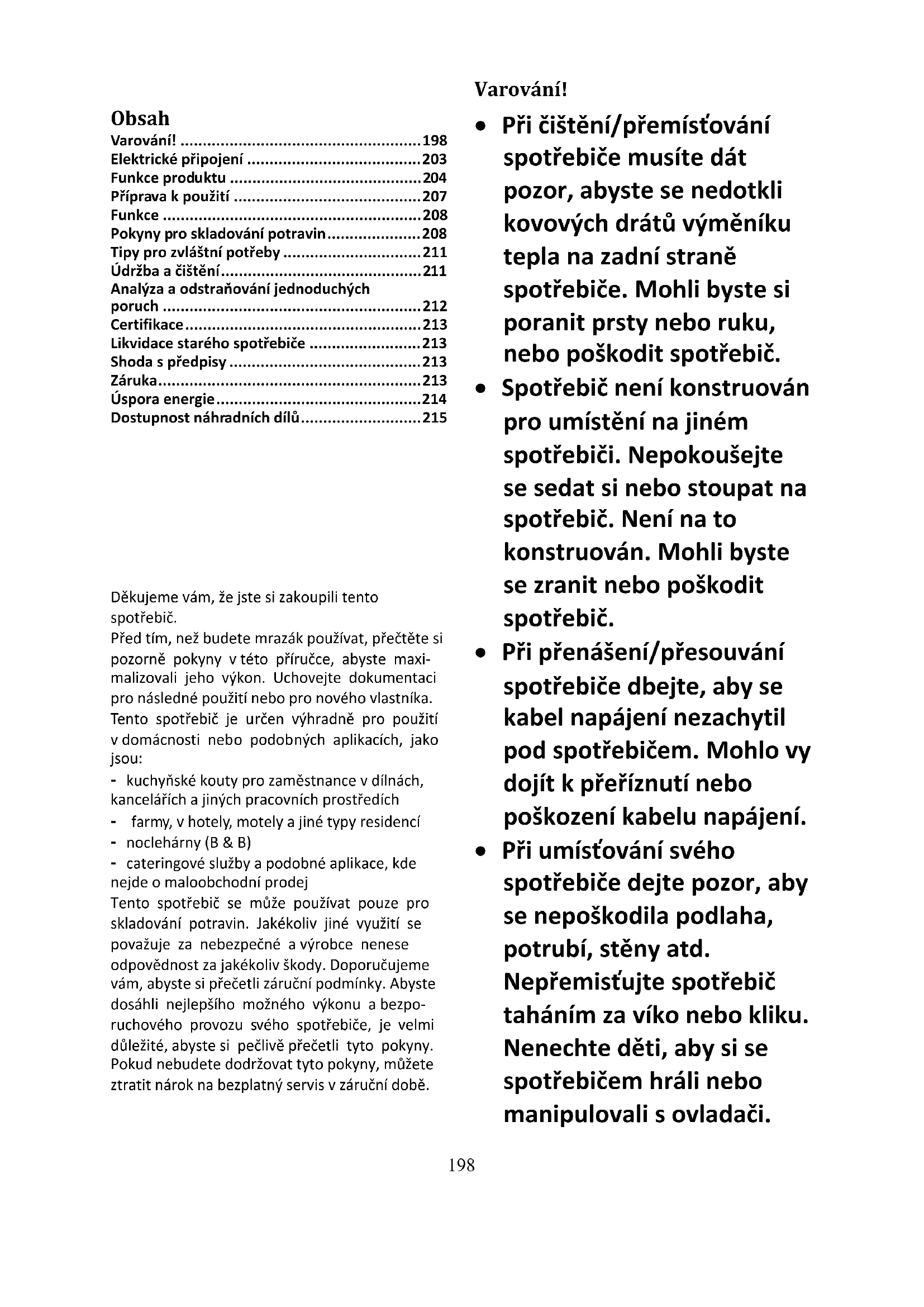- Děti si nesmí se spotřebičem hrát. Čistění a uživatelskou údržbu nesmí provádět děti bez dozoru.203