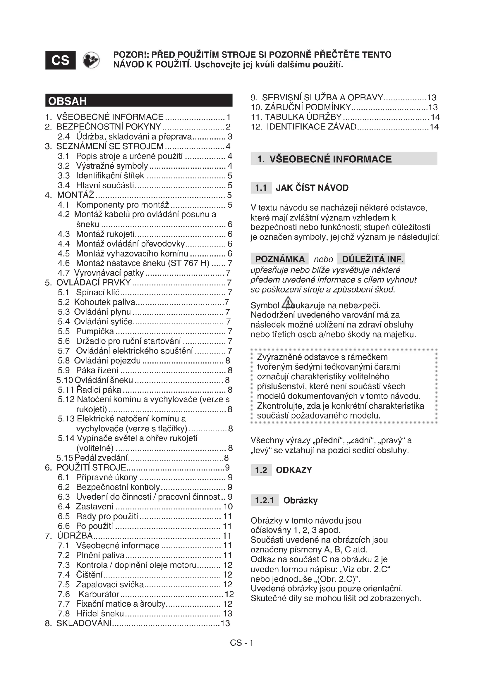 - Při použití stroje blízko silnice dávejte pozor na provoz.CS - 3 Chování