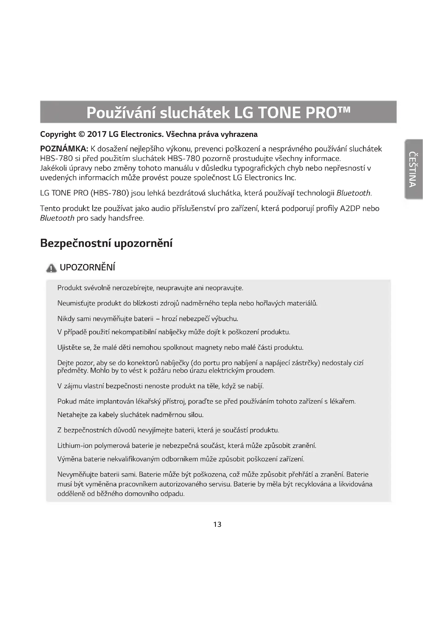 NÁVOD K OBSLUZE Tone Pro HBS780 LG