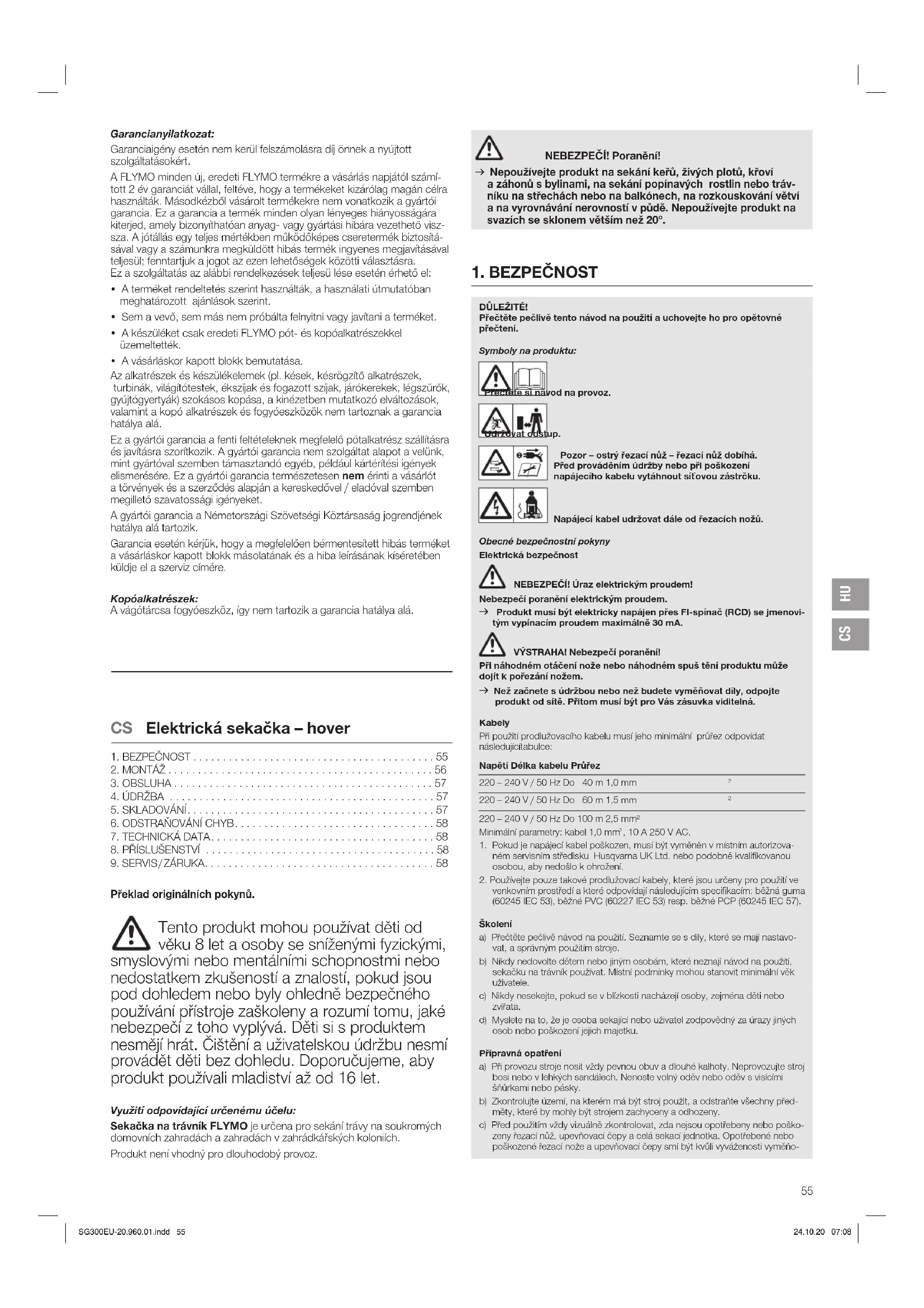 - Předložení dokladu o koupi. Normálně opotřebované díly a komponenty (například na nožích, díly upevňující nůž, turbíny, osvětlovací prostředky, klínové a ozubené řemeny, oběžná kola, vzduchové filtry, zapalovací svíčky), optické změny, díly pod- léhající opotřebení a spotřební díly jsou ze záruky vyloučeny. Tato záruka výrobce je omezena na náhradní dodávku a opravu podle výše uvedených podmínek. Jiné nároky proti nám jako výrobci, třeba na náhradu škody, nejsou na základě záruky výrobce oprávněny. Tato záruka výrobce nemá samozřejmě vliv na existující zákonné a smluvní nároky na záruku vzhledem k obchodníkovi / prodejci. Záruka výrobce podléhá právu Spolkové republiky Německo. V případě uplatnění záruky zašlete prosím vadný produkt s kopií kupního dokladu a popisem vady dostatečně ofrankované na adresu servisu. SG300EU-20.960.01.indd 58 24.10.20 07:08CS