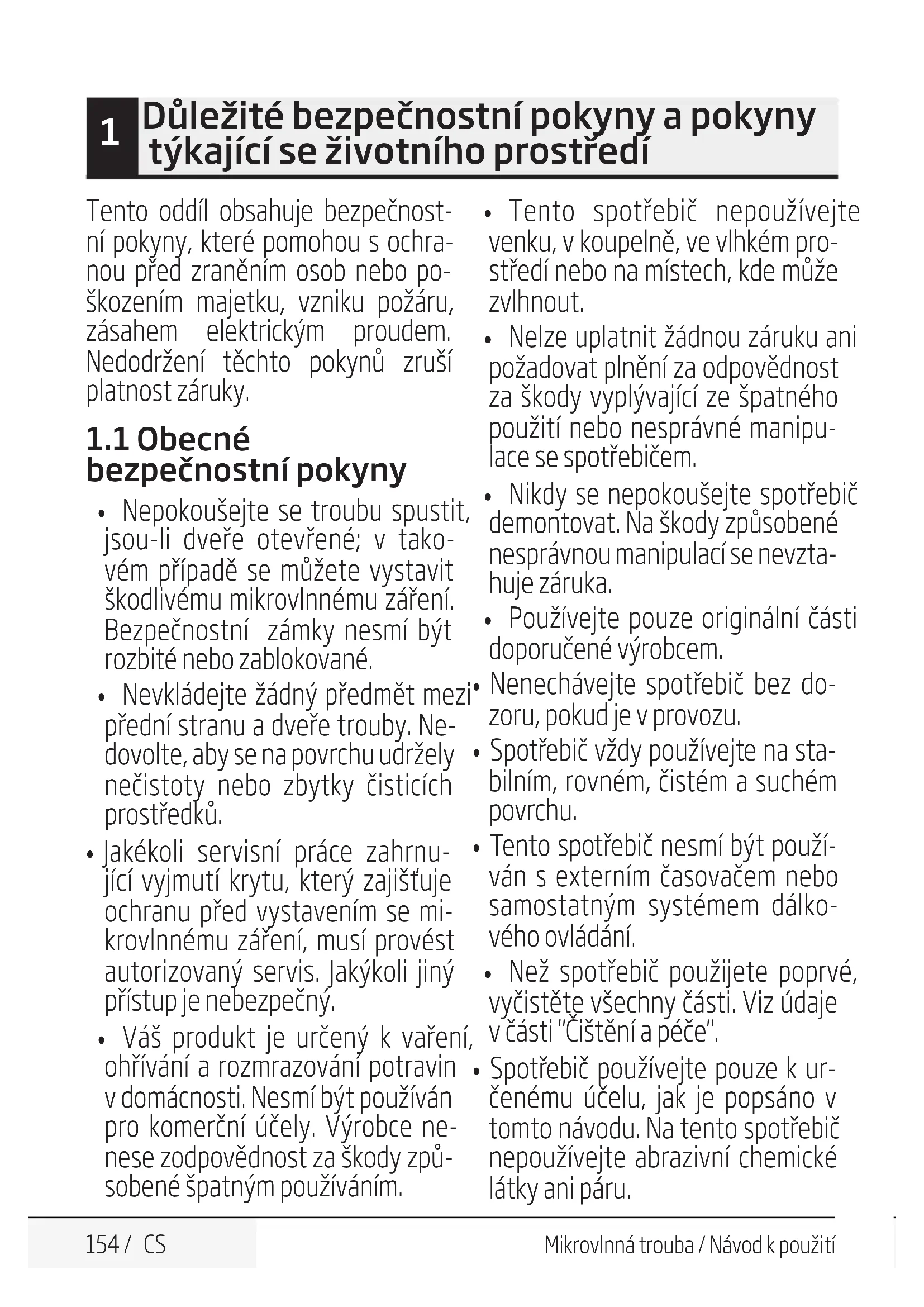 - Spotřebič používejte pouze k ur- čenému účelu, jak je popsáno v tomto návodu. Na tento spotřebič nepoužívejte abrazivní chemické látky ani páru.155 / CS Mikrovlnná trouba / Návod k použití