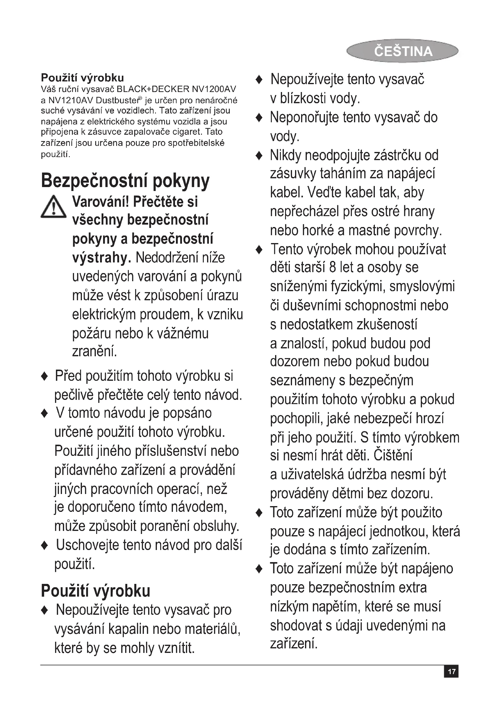NÁVOD K OBSLUZE Dustbuster Auto NV1210AV BLACK & DECKER