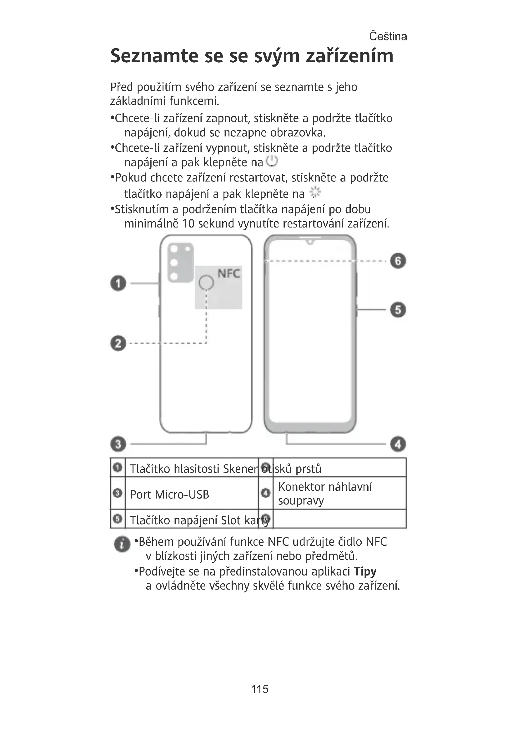- Podívejte se na předinstalovanou aplikaci Tipy a ovládněte všechny skvělé funkce svého zařízení. Čeština 115Začínáme