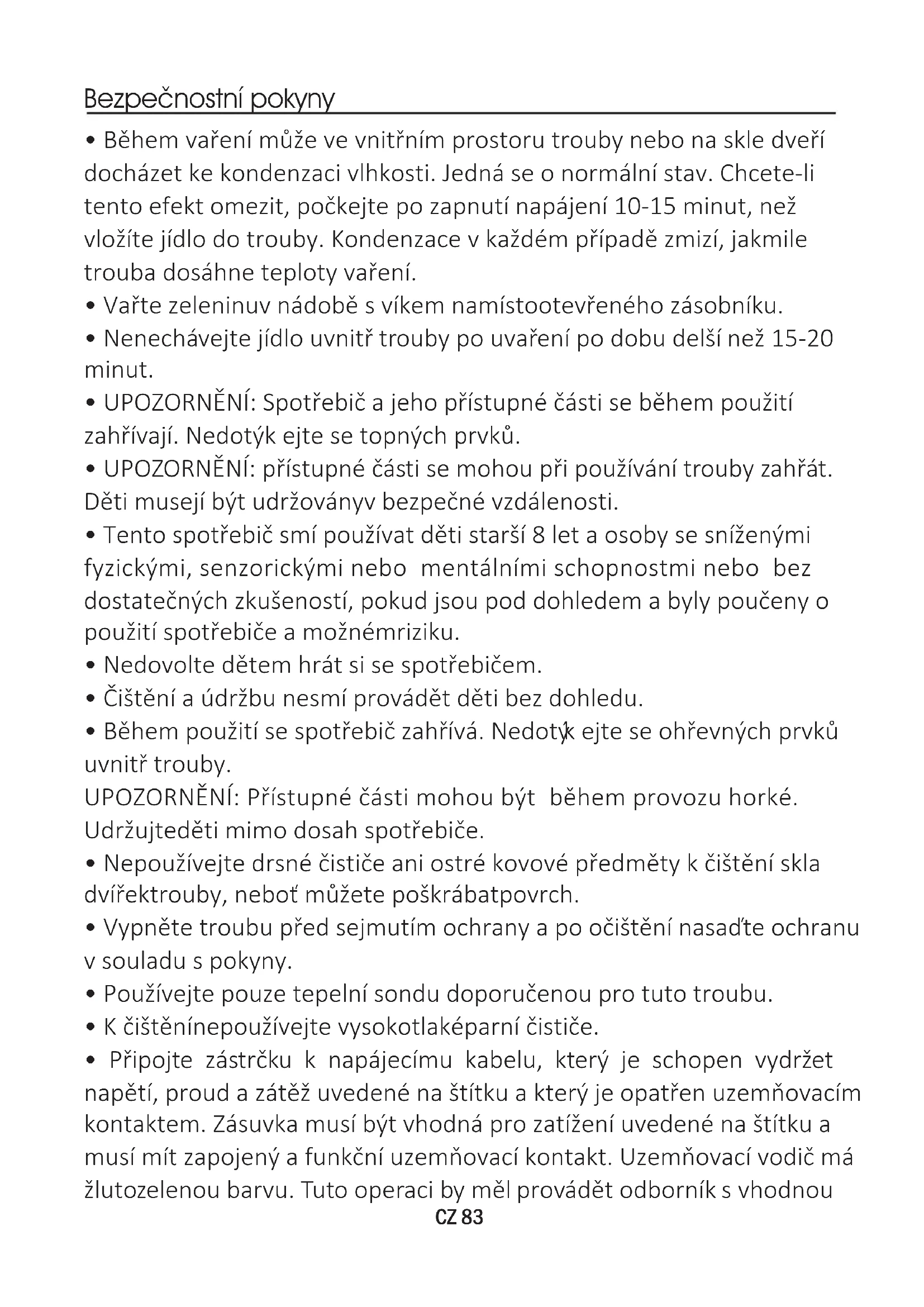 - UPOZORNĚNÍ: přístupné části se mohou při používání trouby zahřát. Děti musejí být udržoványv bezpečné vzdálenosti.