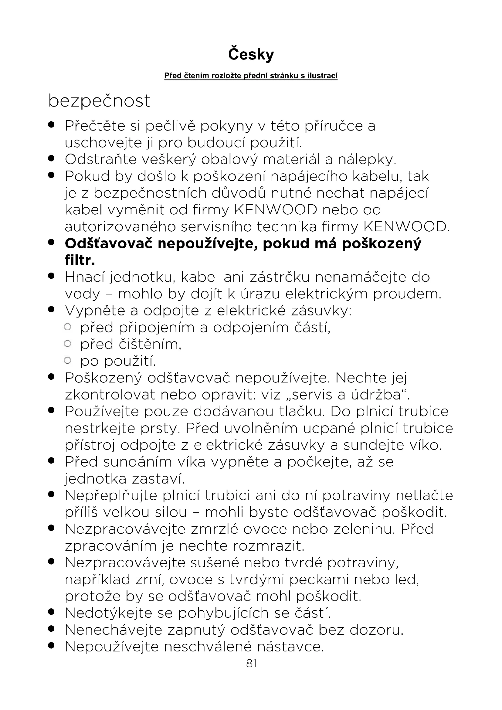 Nepoužívejte neschválené nástavce. Ïesky P¡ed ïtením rozlo¥te p¡ední stránku s ilustrací81 82