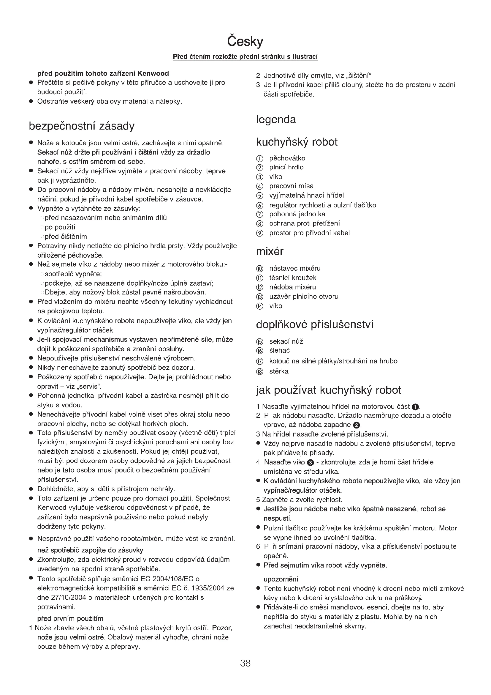 Po ukončení doby své životnosti nesmí být výrobek odklizen společně s domácím odpadem. Je třeba zabezpečit jeho odevzdání na specializovaná místa sběru tříděného odpadu, zřizovaná městskou správou anebo prodejcem, který zabezpečuje tuto službu. Oddělené sešrotování elektrospotřebičů je zárukou prevence negativních vlivů na životní prostředí a na zdraví, které způsobuje nevhodné nakládání, umožňuje recyklaci jednotlivých materiálů, a tím i významnou úsporu energií a surovin. Pro účely zdůraznění povinnosti tříděného sběru odpadu elektrospotřebičů je na výrobku zaškrtnutý příslušný symbol pro sběr tříděného odpadu. 40a Kenwood-készülék használata előtt