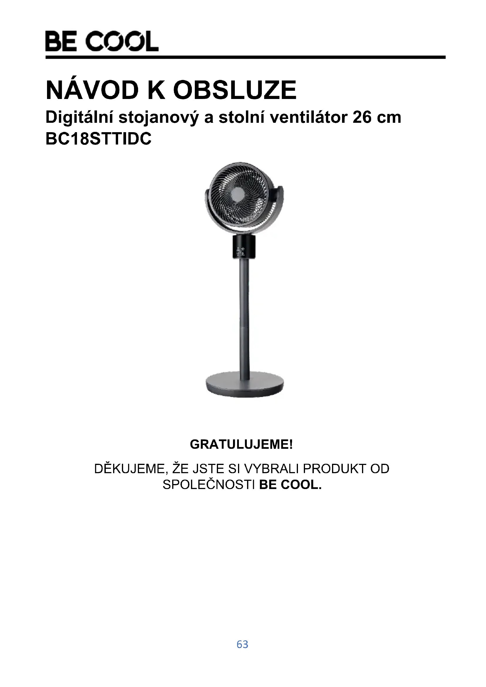 BC18STTIDC - Ventilátor Be Cool - Bezplatný návod k obsluze