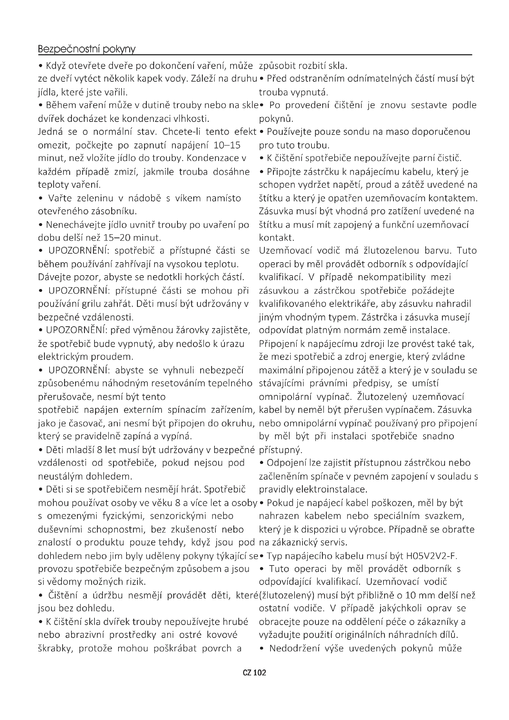 - Nedodržení výše uvedených pokynů může CZ 102ohrozit bezpečnost spotřebiče a zneplatnit záruku.