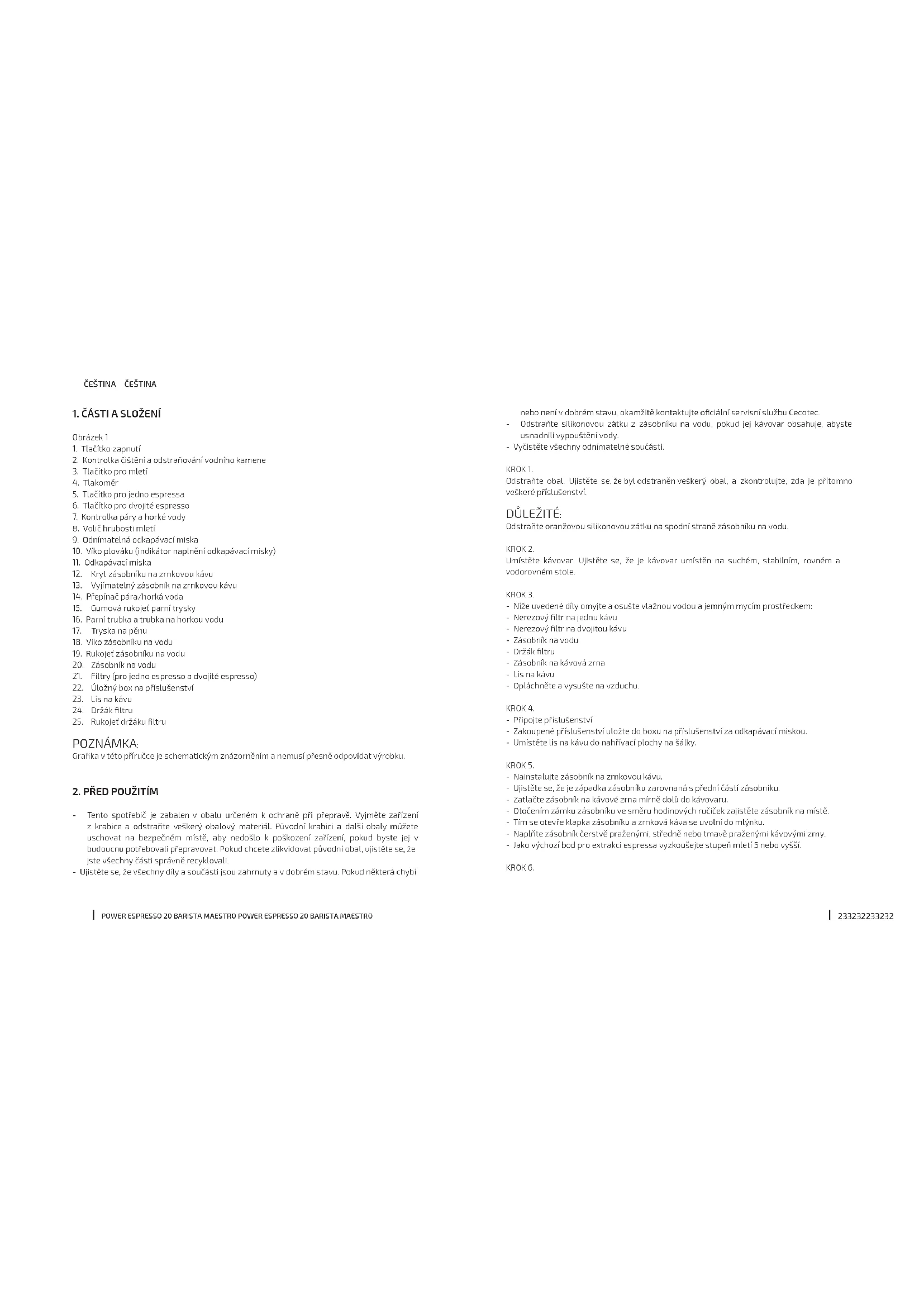 NÁVOD K OBSLUZE Power Espresso 20 Barista Maestro CECOTEC