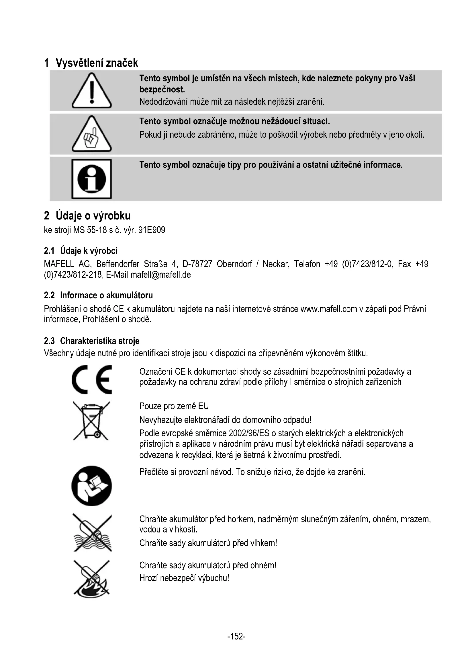 Tento symbol označuje tipy pro používání a ostatní užitečné informace. 2 Údaje o výrobku ke stroji MS 55-18 s č. výr. 91E909