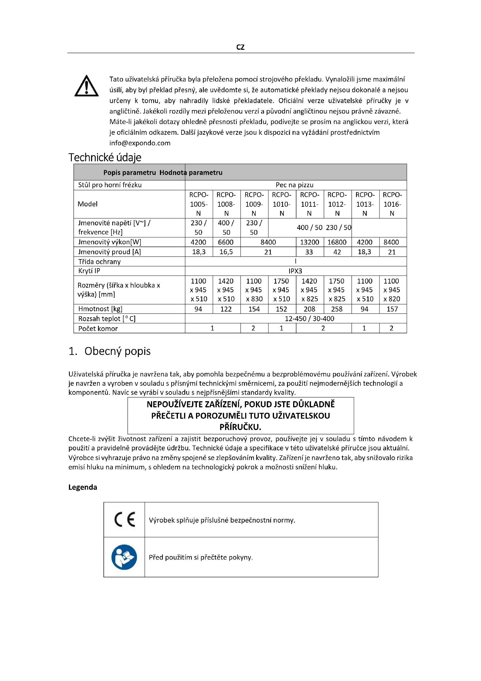 Tato uživatelská príručka byla preložena pomoci strojového prekladu. Vynaložili jsme maximální uzilí, aby byl prěklad prěsný, ale uvědomte si, ze automaticité prěklady nejsou dokonále a nejsou určeny k tomu, aby nahradily lidské prěkladatele. Oficiálné verze uživatelské príručky je v angličtěne. Jakékoli rozdǐly mezi prěloženou verzí a původní angličtinou nejsou právně závazné. Máte-li jakékoli dotazy ohledné prěsností prěkladu, podívejte se prosím na anglickou verzi, která je oficiálním odkazem. Dalí jazykové verze jsou k disposzici na vyžádoní prostřednictvím info@expondo.com