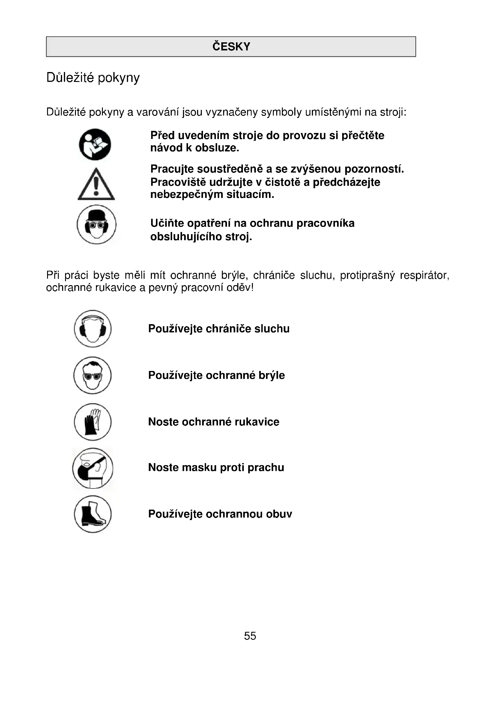 Před uvedením stroje do provozu si přečtěte návod k obsluze. Pracujte soustředěně a se zvýšenou pozorností.