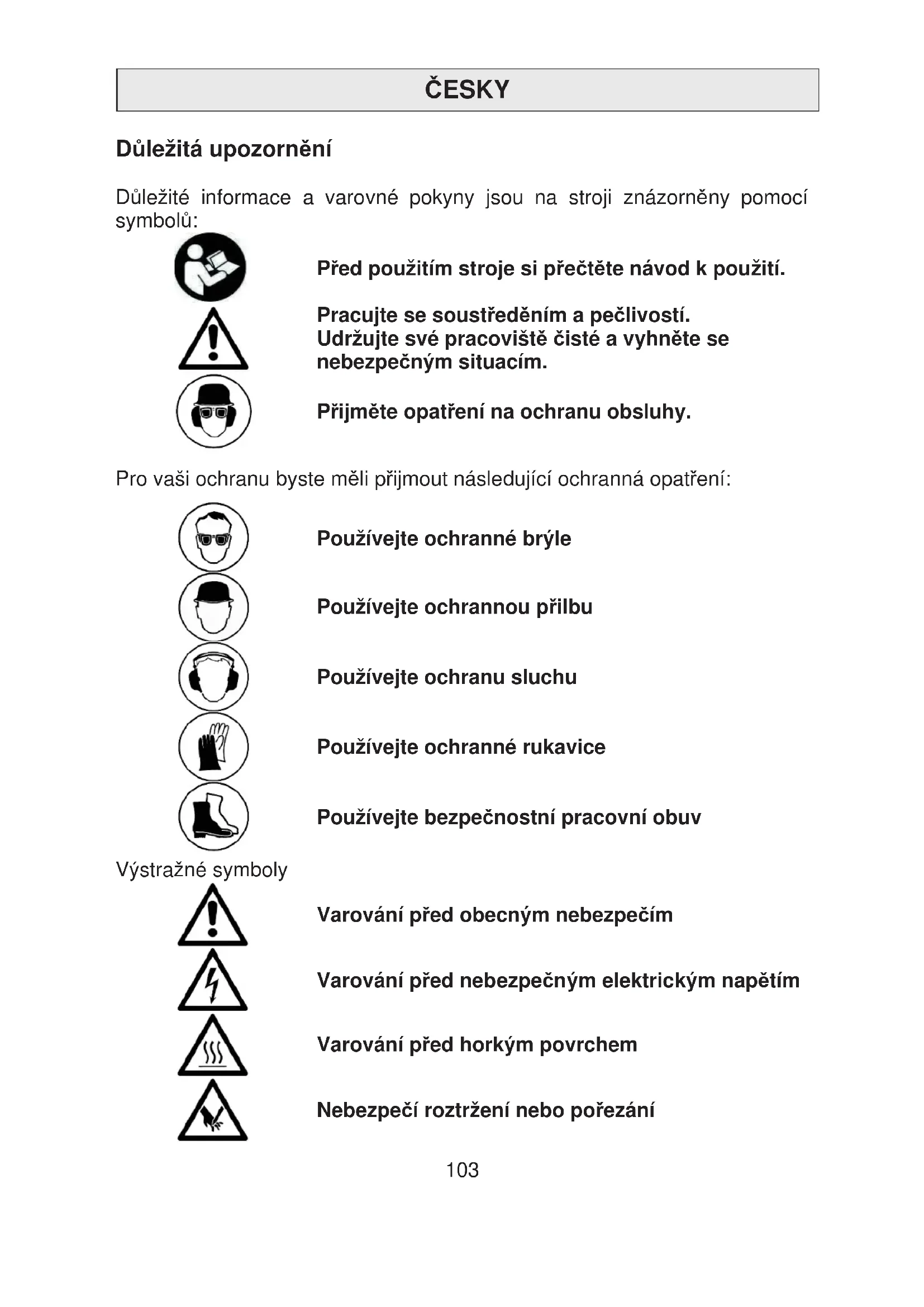 ESKY Dležitá upozornní D ležité informace a varovné pokyny jsou na stroji znázorn!ny pomocí symbol :