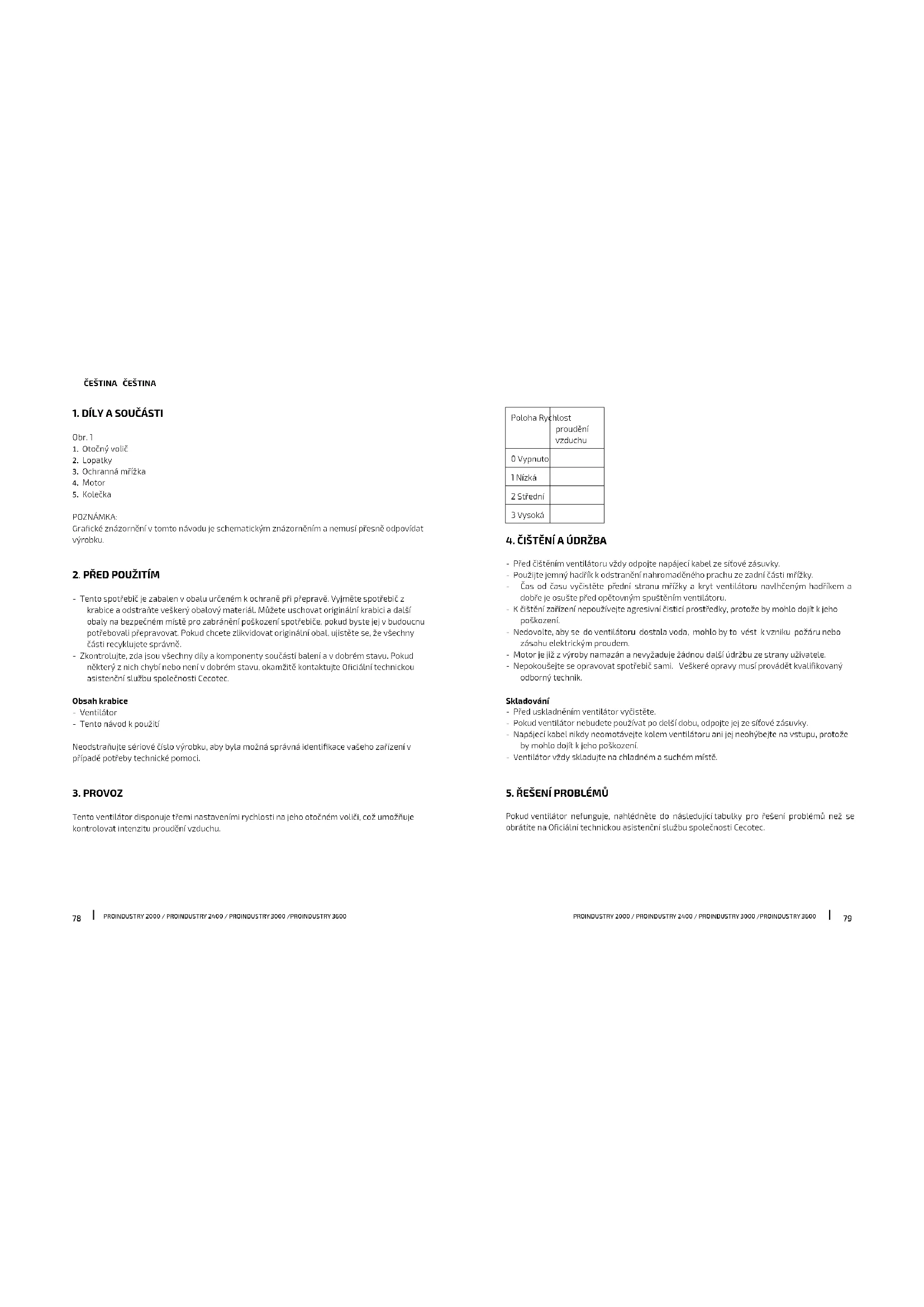 Referenční číslo výrobku: EU01_106724 Výrobek: ProIndustry 2000 Napětí: 220-240 V~ Frekvence: 50 Hz Výkon: 120 W Popis Symbol Hodnota Jednotka Maximální průtok ventilátoru F 90,1 m