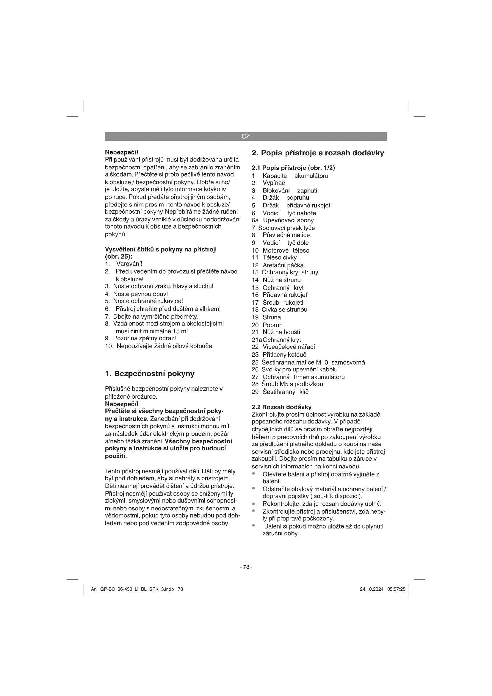 Balení si pokud možno uložte až do uplynutí záruční doby. Anl_GP-BC_36-430_Li_BL_SPK13.indb 78Anl_GP-BC_36-430_Li_BL_SPK13.indb 78 24.10.2024 05:57:2524.10.2024 05:57:25CZ