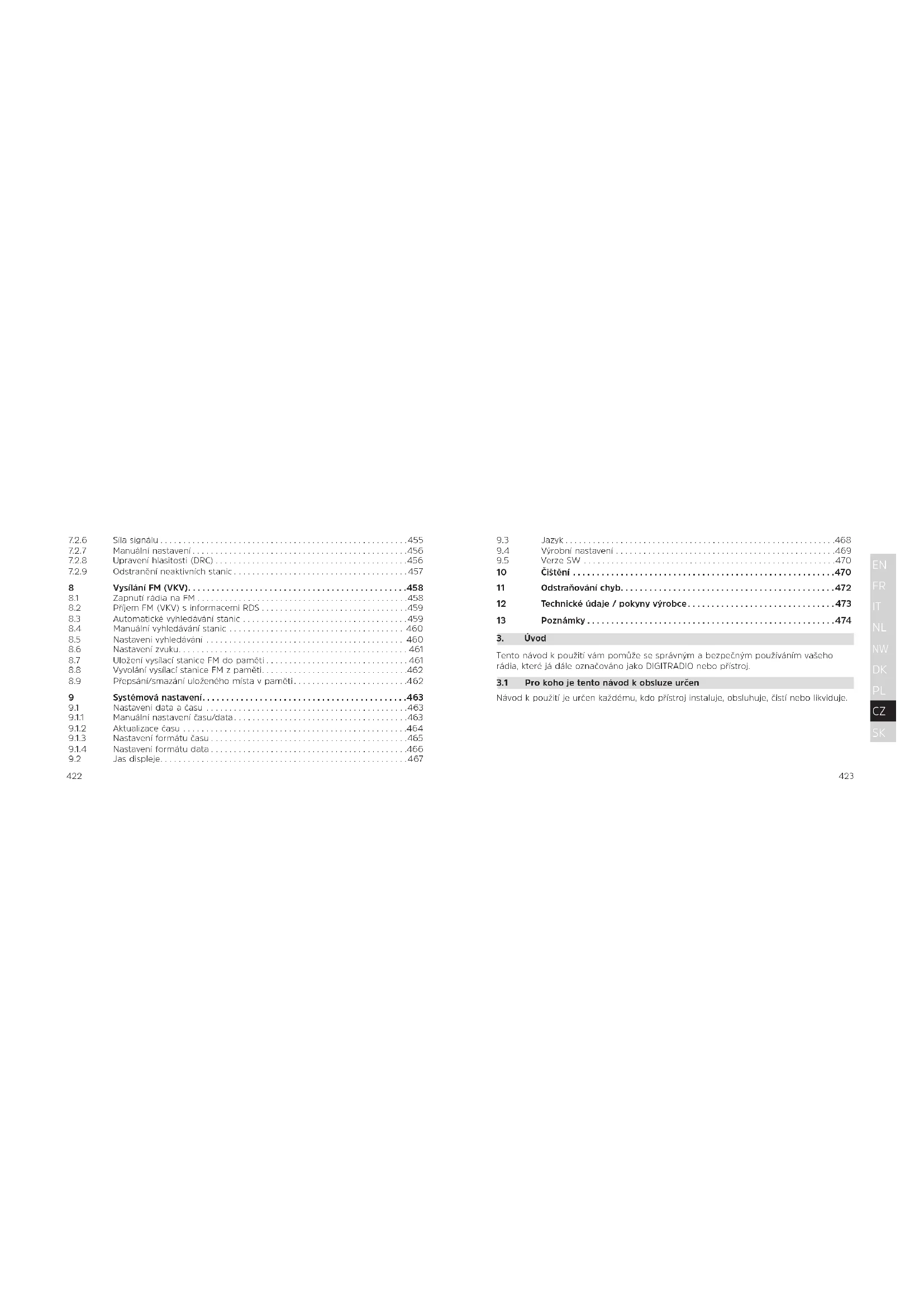 5.4.3 Přepínání režimu DAB+/FM . . . . . . . . . . . . . . . . . . . . . . . . . . . . . . . . . . . . . . . .448