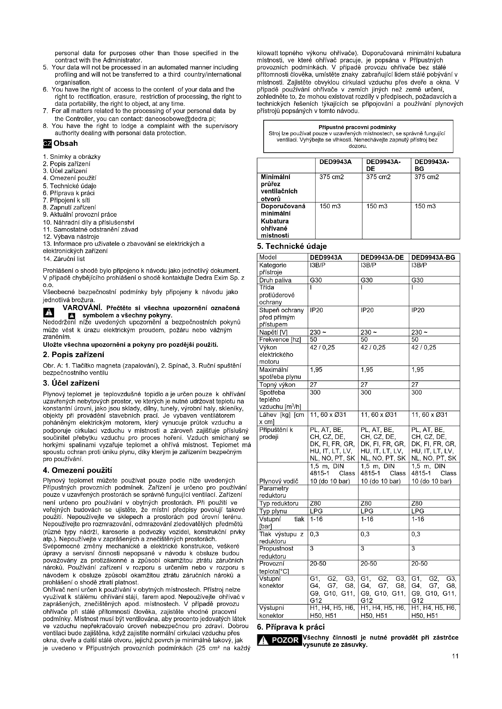 NÁVOD K OBSLUZE DED9943A DEDRA