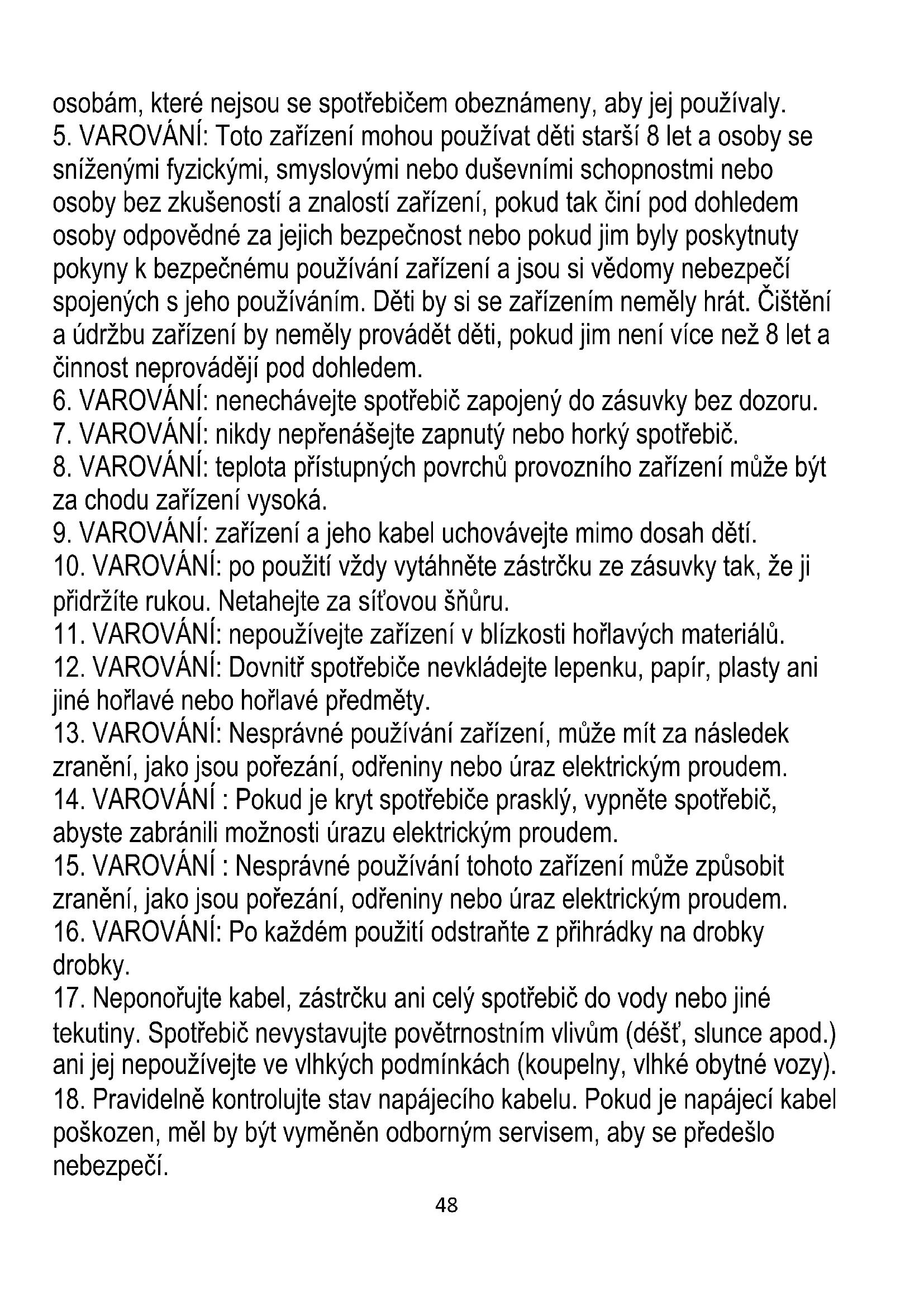 6. VAROVÁNÍ: nenechávejte spotřebič zapojený do zásuvky bez dozoru.