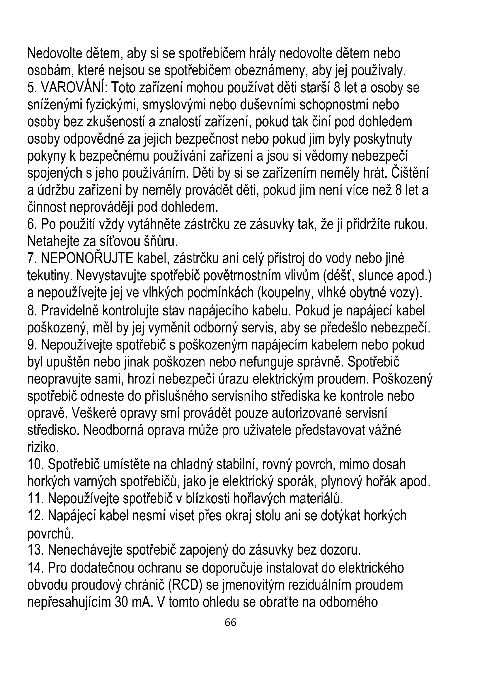 4. Při používání spotřebiče v přítomnosti dětí dbejte zvýšené opatrnosti.66