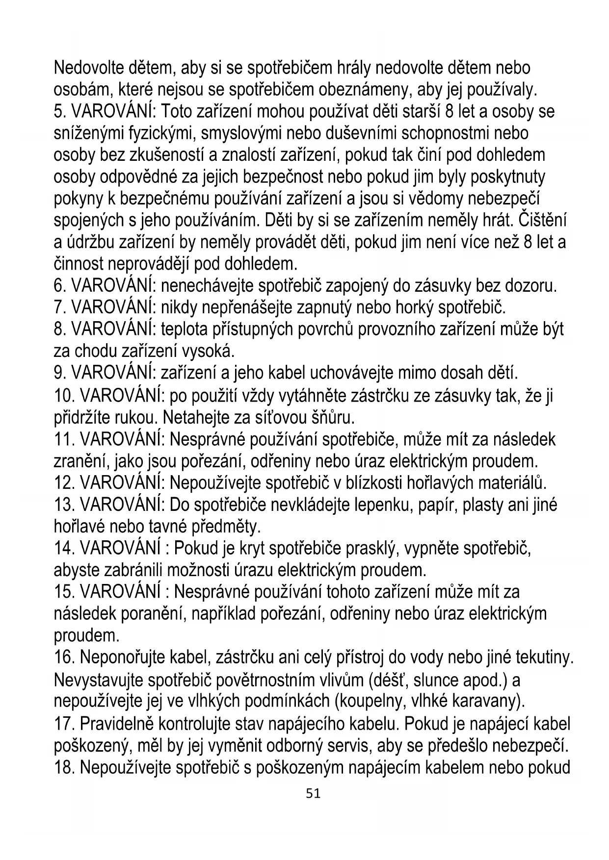 4. Při používání spotřebiče v přítomnosti dětí dbejte zvýšené opatrnosti.51