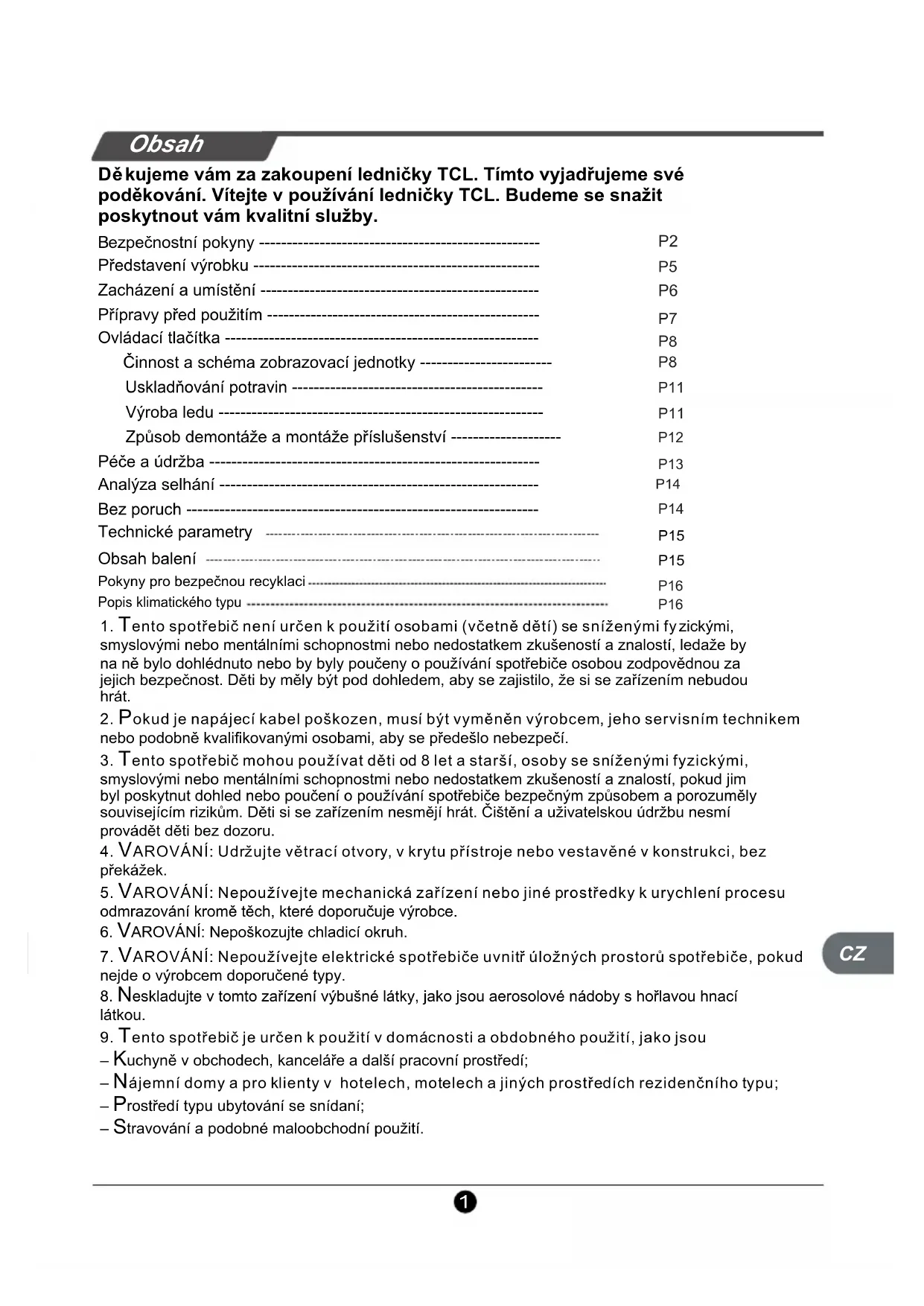 kujeme vám za zakoupení ledničky TCL. Tímto vyjadřujeme své poděkování. Vítejte v používání ledničky TCL. Budeme se snažit poskytnout vám kvalitní služby.