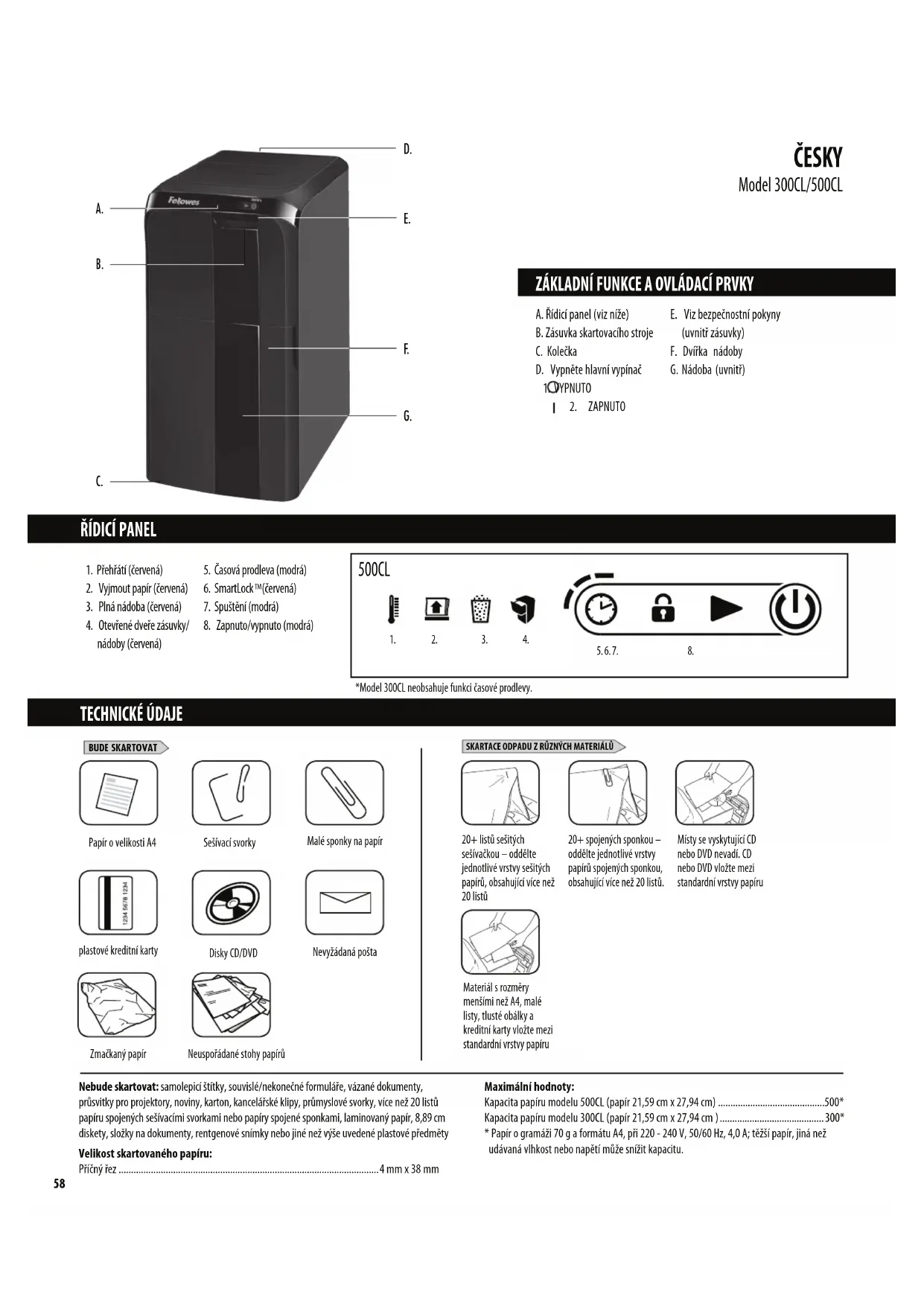 AutoMax 300CL - Skartovač FELLOWES - Bezplatný návod k obsluze